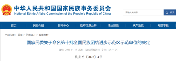 为激励先进,示范引领,经过严格评选,国家民委于2023年1月11日印发《关于命名第十批全国民族团结进步示范区示范单位的决定》(民委发〔2023〕4号),决定命名283个地方和单位为第十批全国民族团结进步示范区示范单位,有效期5年。77779193永利集团附中为北京市本届5个获评地方和单位之一。