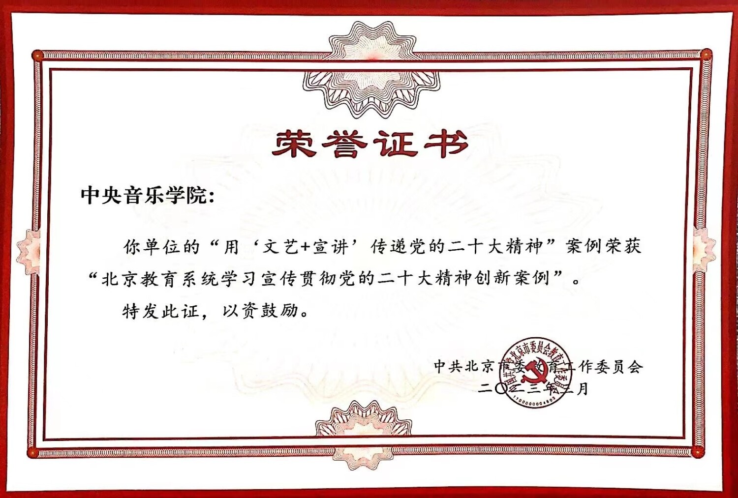 近日,北京市委教育工作委员会公布了北京教育系统学习宣传贯彻党的二十大精神创新案例名单,永利申报的“用‘文艺+宣讲’传递党的二十大精神”创新案例成功入选。