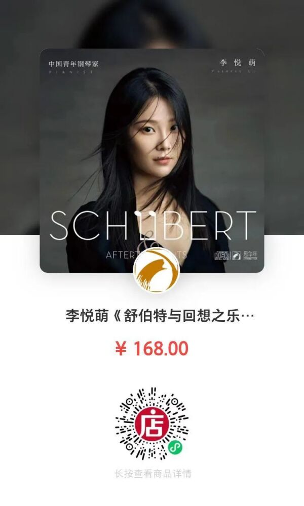李悦萌《Schubert & Afterthoughts》已上线北京环球音像出版有限公司微店,欢迎大家长按二维码跳转选购!