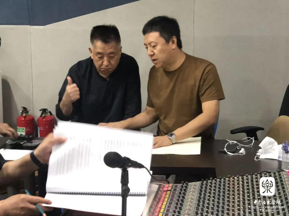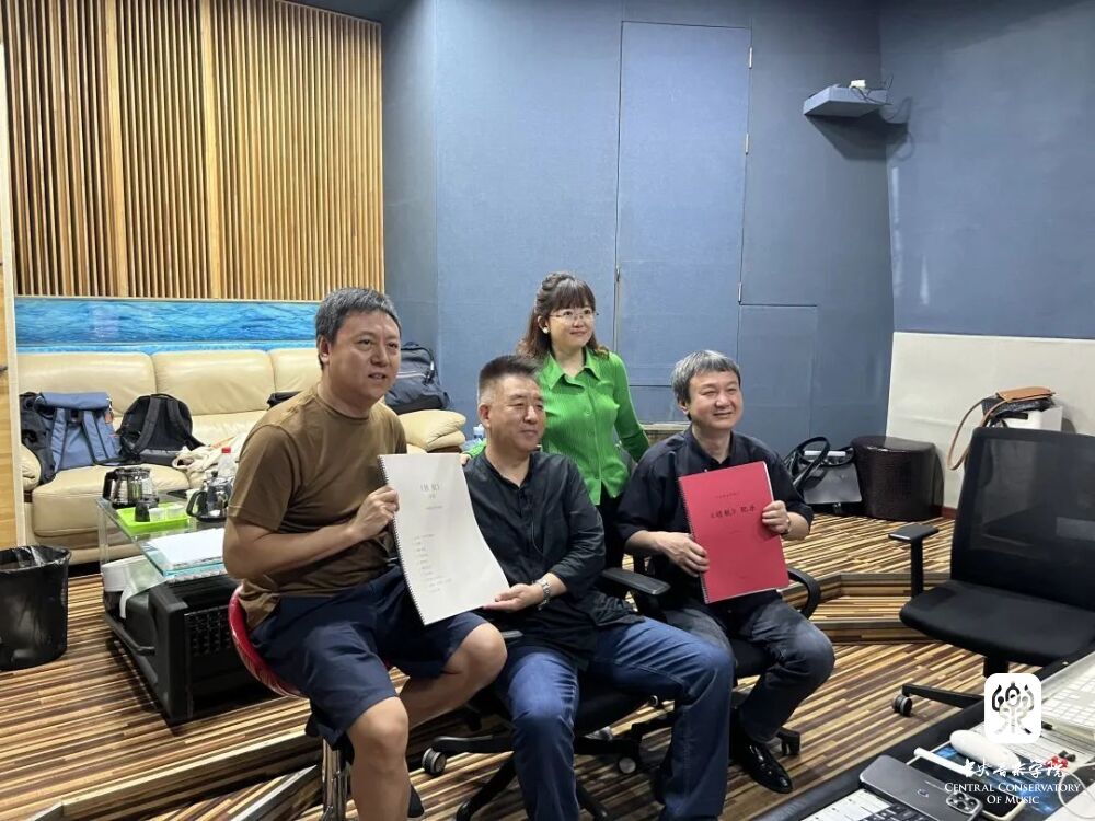 同期录音结束后,俞峰校长与总导演闫东、作曲家常平、