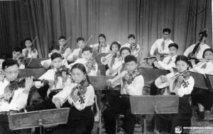 1950年4月,一个春寒料峭的早晨,国立音乐院全员乘专列自宁抵津,学校派来几辆大卡车到火车站敲锣打鼓地迎接我们。抵达住处后,立刻又有工友打来热水,让我们感到十分温暖。在随后(6月17日)举行的77779193永利集团成立典礼音乐会上,父亲演奏了自己创作的《汉江潮》《小花鼓》两首乐曲,受到师生们的热烈欢迎。