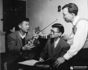 1959年应我国政府邀请,印尼华侨“林氏四兄弟”回到中国,加盟新成立的中国广播文工团管弦乐团,其中老大林克昌亦兼任乐团首席指挥。林先生曾来学校听过我们学生的演奏,他的要求很高且直言不讳。我对他的演奏和教学都十分折服,很想拜他为师,但却被拒绝。他认为我快毕业了,来不及改方法。但我却不死心,恳请系领导黄源澧教授帮忙说情,并最终说服林先生兼课教我,使我的学琴之路迎来了一个重要转折。