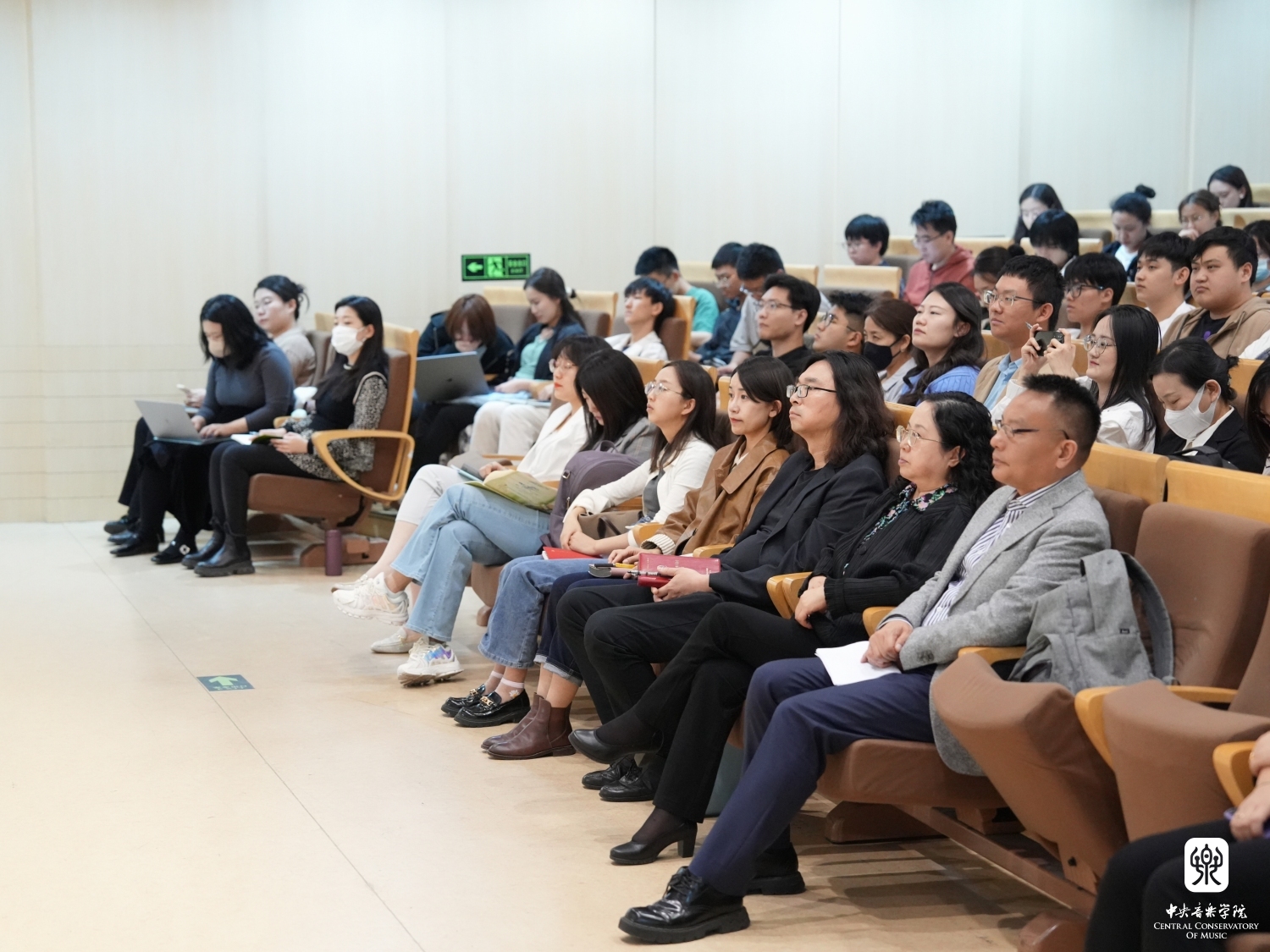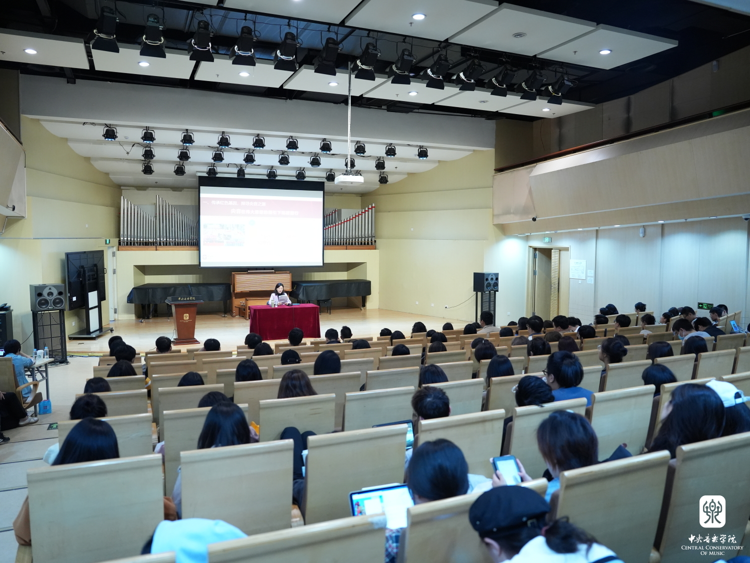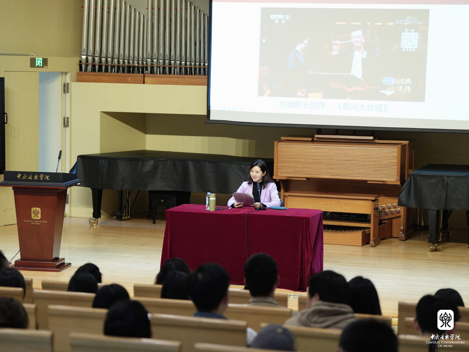 一代代央音人始终与党和国家同心同德,风雨共济,把智慧、汗水挥洒在祖国、人民最需要的地方。于红梅进一步引发同学们思考:身处新时代,面对新的文化使命,央音要发挥什么作用?
