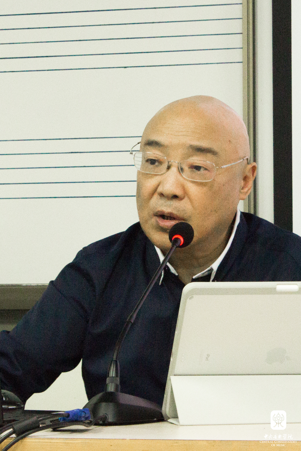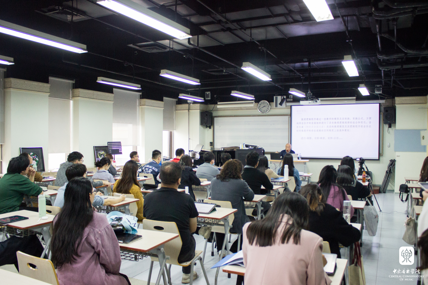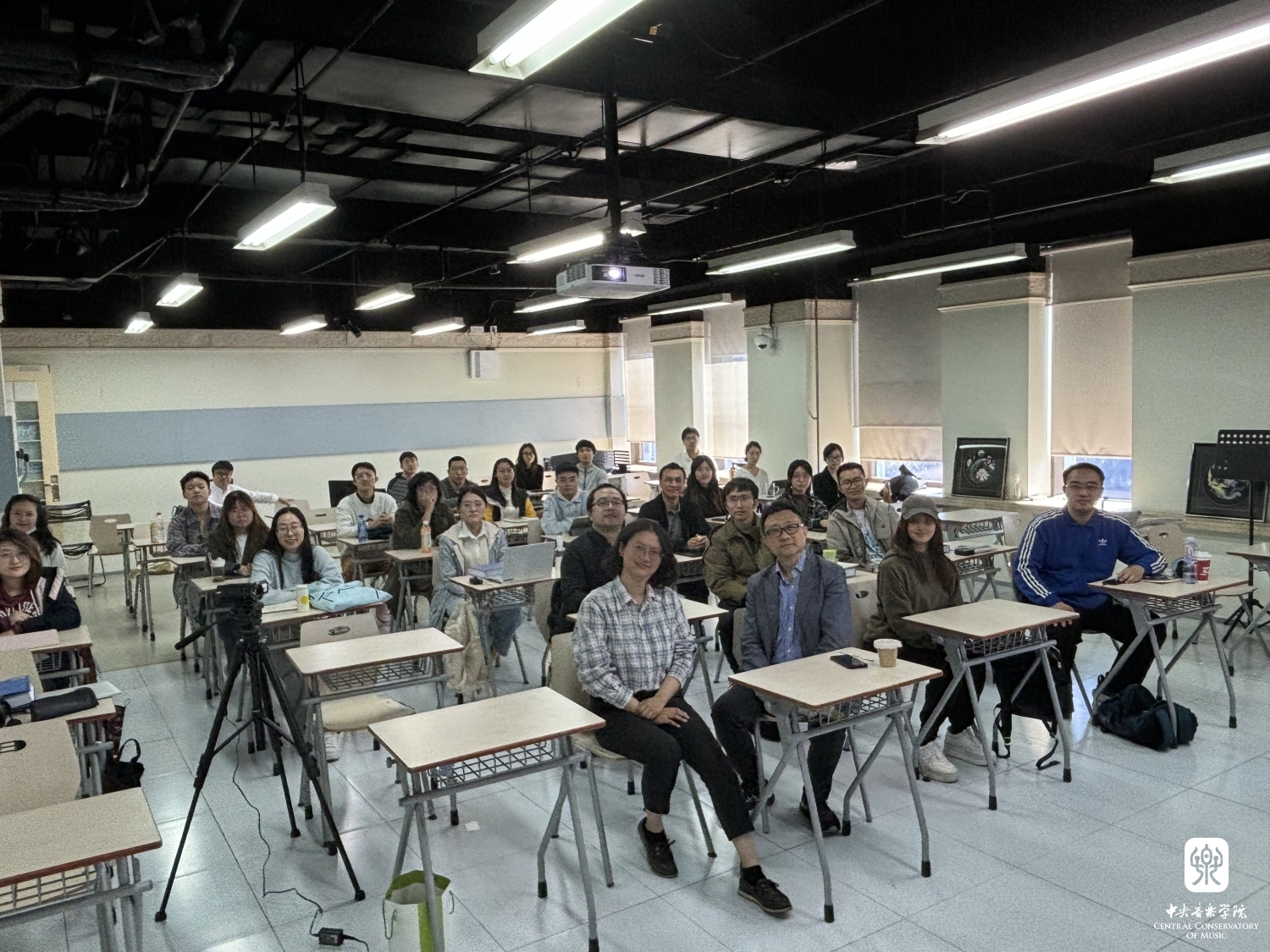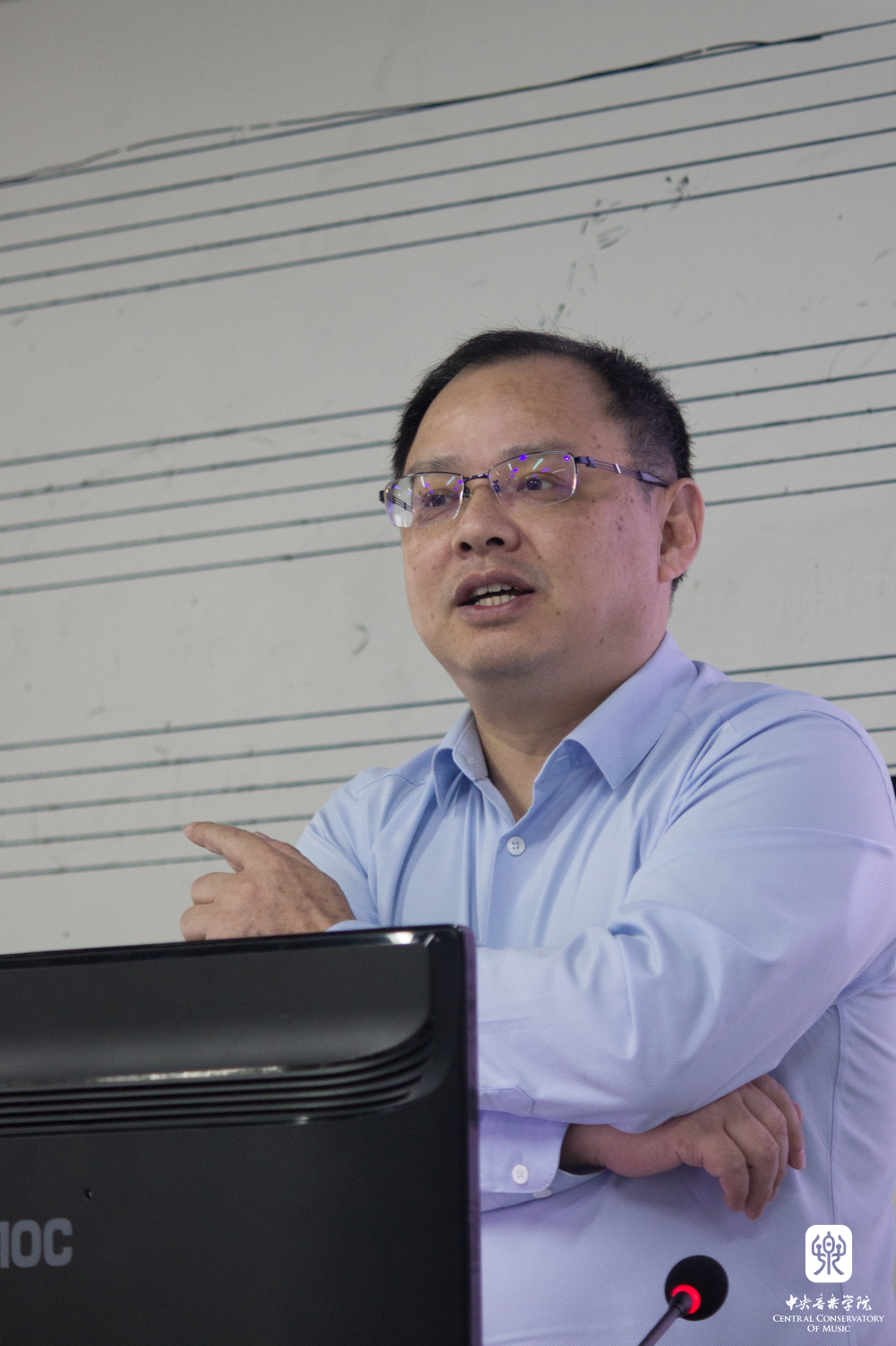 10月12日下午,系列讲座在教学楼617教室开讲。作曲系主任郝维亚教授主持了讲座,他代表我院及作曲系欢迎贾达群教授及其团队来到我院分享最新学术成果。贾达群教授带来首场题为“中心到核心的衍变,自由与逻辑的博弈——后调性音乐音高组织发展之我见”的讲座。贾达群追溯了音乐史中两次重要的革命性突破及其所带来的音高组织演变,并由此引出“后调性音高组织理论”系统性研究的必要性及其意义。随后他详细阐述了两次音高革命所带来的音乐审美与结构逻辑的转变,强调了后调性音乐抽象性与逻辑性的提高及其时间维度和空间维度上的拓展。作为研究团队的带头人,贾达群分享了《后调性音乐中的音高组织体系、技法及分析》从研究、撰写到整理、出版的过程,并逐一介绍各成员的研究子课题,他代表团队感谢我院的邀请,期待通过此次系列讲座活动增强校际间学术交流和彼此促进。