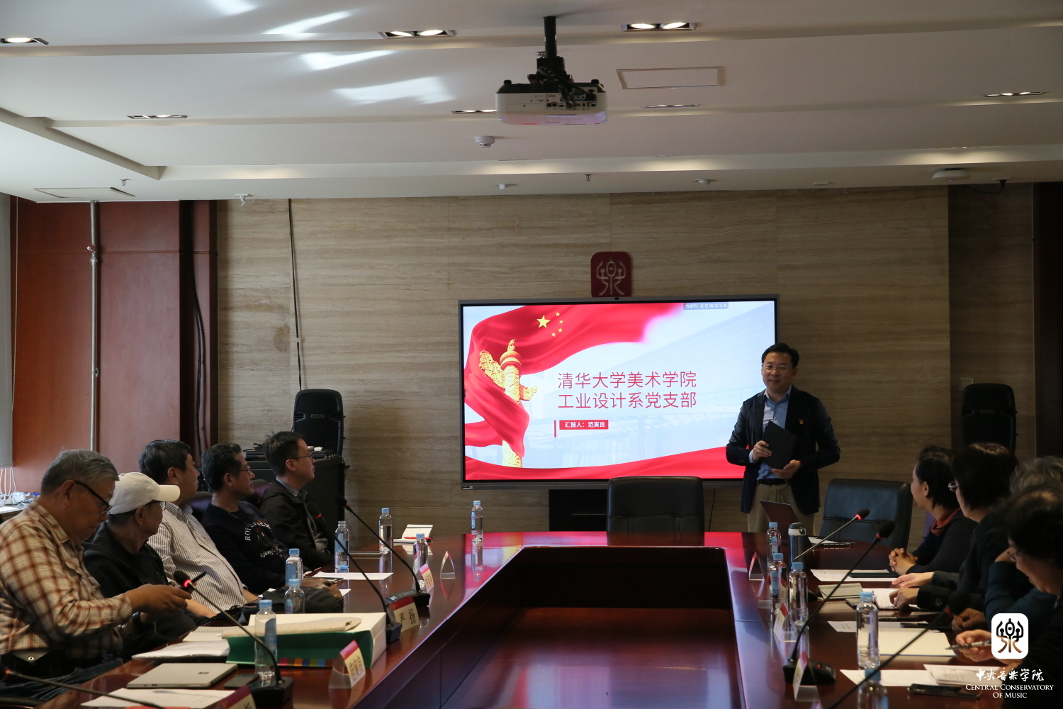 清华大学美术学院工业设计系党支部书记范寅良对音乐学系的邀请表示感谢,并对所属支部的基本情况做了介绍。工业设计系教师党支部现有党员11人,从2018年至今五年以来开展了丰富多彩的外出学习与调研活动,真正表现出党支部的向心力和务实、敬业的实践精神。随后,范寅良书记重点对清华大学工业设计系师生承接的国家重点工程项目进行具体介绍,其中最引人瞩目的当属中华人民共和国成立70周年庆祝活动中的重要景观设计“红飘带”。为了能够在国家庆典上取得创新,“红飘带”项目从设计到实现是全系党员教师锐意进取、团结奋斗的实践结晶。它凝聚着党中央对项目设计的指导与关怀,也展现出支部党员不畏艰难、为国奉献的勃勃雄心。2021年4月,习近平总书记在清华大学110周年校庆期间到学校考察工作,并专程前往美术学院参观。当时,工业设计系专门为清华大学校史陈列和美术学院校庆特别展做了新的设计规划。总书记在详细了解重大主题和国家形象设计作品创作、展示情况后指出,美术、艺术、科学、技术相辅相成、相互促进、相得益彰。要发挥美术在服务经济社会发展中的重要作用,把更多美术元素、艺术元素应用到城乡规划建设中,增强城乡审美韵味、文化品位,把美术成果更好服务于人民群众的高品质生活需求。2022年,清华大学工业设计系又承担了冬季奥林匹克运动会主火炬塔“雪花”的设计任务。全体工作人员通过巧思精算、克服自然条件限制,成就了开幕式上主火炬点火的别致一章,令全国人民为之感动与自豪。今天,清华大学美术学院即将迎来建院67周年,工业设计系的党员同志们更以饱满的工作热情投入到国家重大项目的设计实施与优秀设计人才的培养上,积极书写大国设计的新篇章。