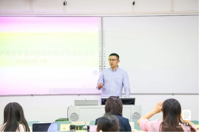 我院视唱练耳教研室李鹤老师的论文宣讲题目为《对雅克·沙皮伊绝对听觉训练法的教学实践与思考》。他对雅克·沙皮伊的生平及教学特点进行了介绍,雅克·沙皮伊认为内心听觉、相对听觉、绝对听觉三者同样重要,并最终集中导向创造性听觉能力。李鹤老师将绝对听觉训练进行阐述并结合个人教学经验对视唱练耳教学的思考进行了概述。