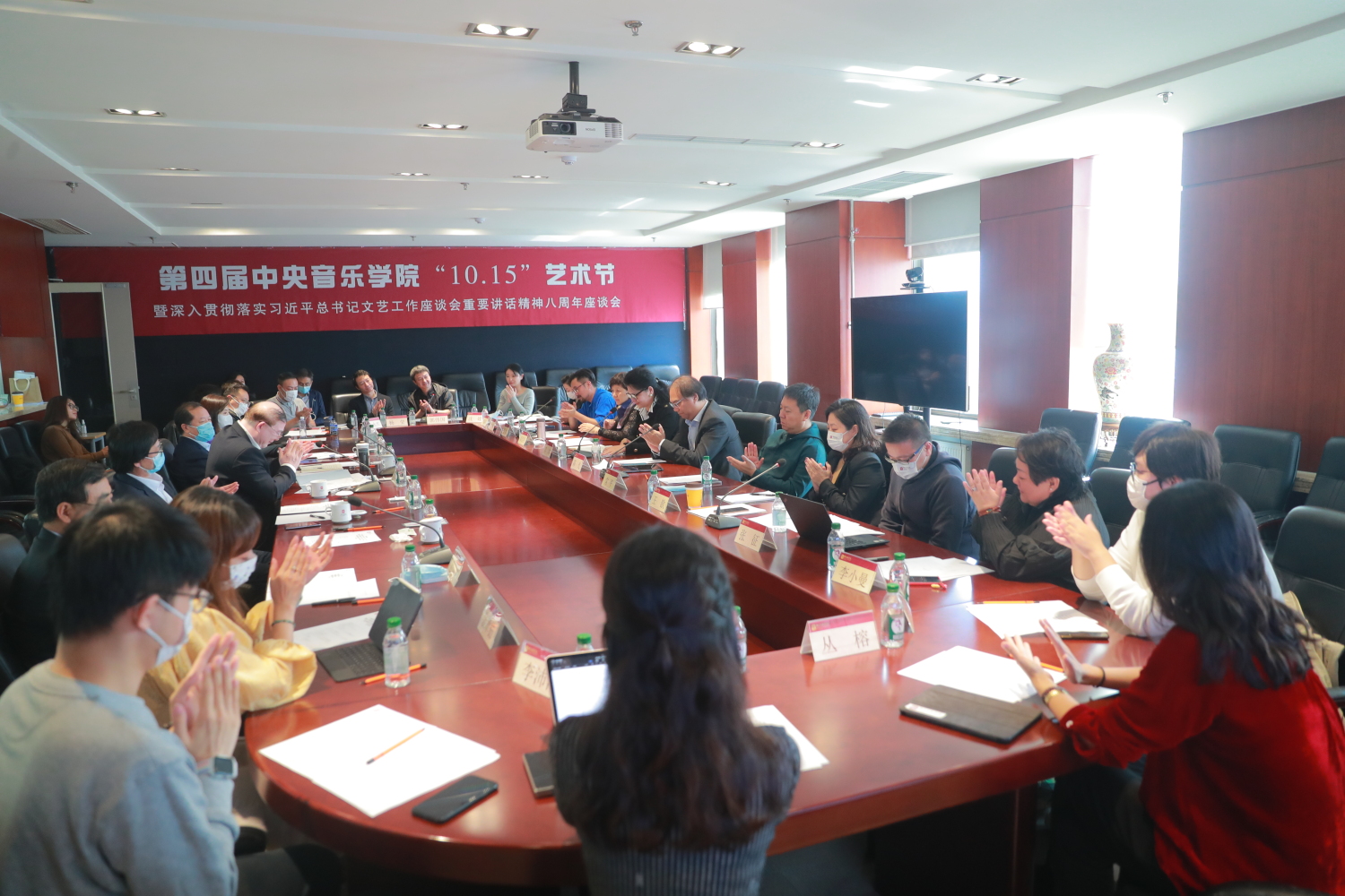 2022年10月15日上午,在习近平总书记文艺工作座谈会讲话发表八周年之际和举国上下喜迎党的二十大胜利召开的重要时刻,永利在教学楼717会议室举办回顾与展望——第四届77779193永利集团“10·15”艺术节暨深入贯彻落实习近平总书记文艺工作座谈会重要讲话精神八周年座谈会。座谈会邀请4年来深度参与艺术节创办、活动开展的永利21名师生音乐家代表,以“回顾与展望”为主题,交流总结艺术节策划、活动开展的经验和成果。