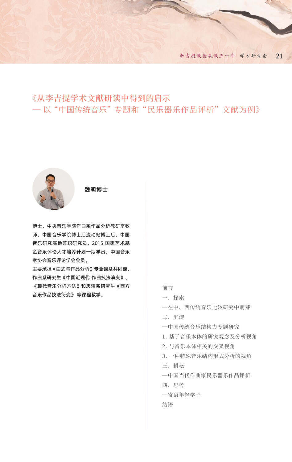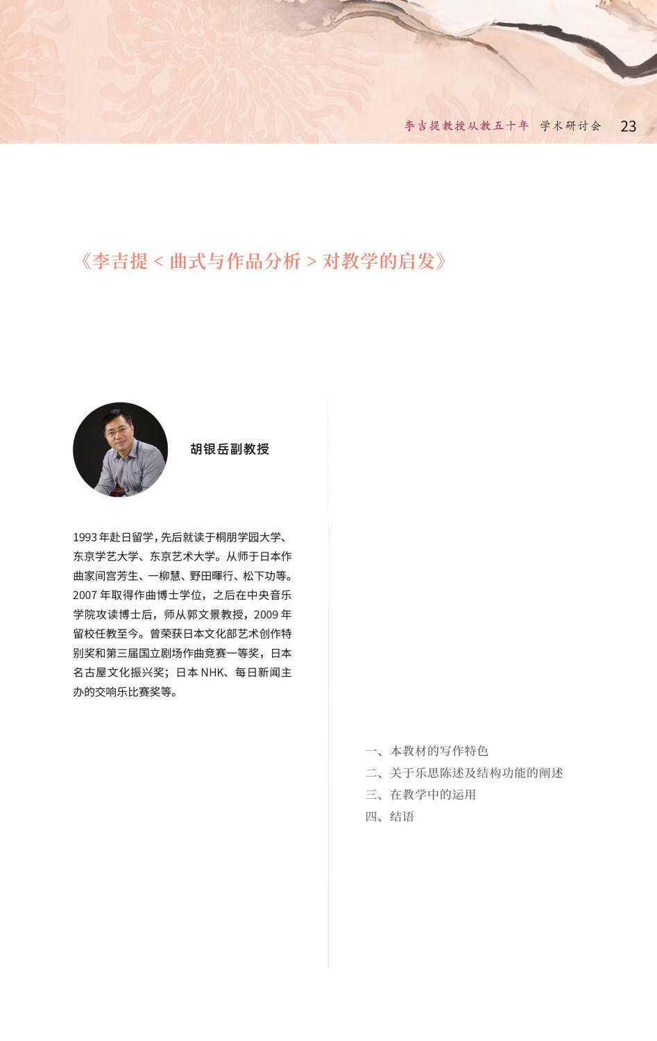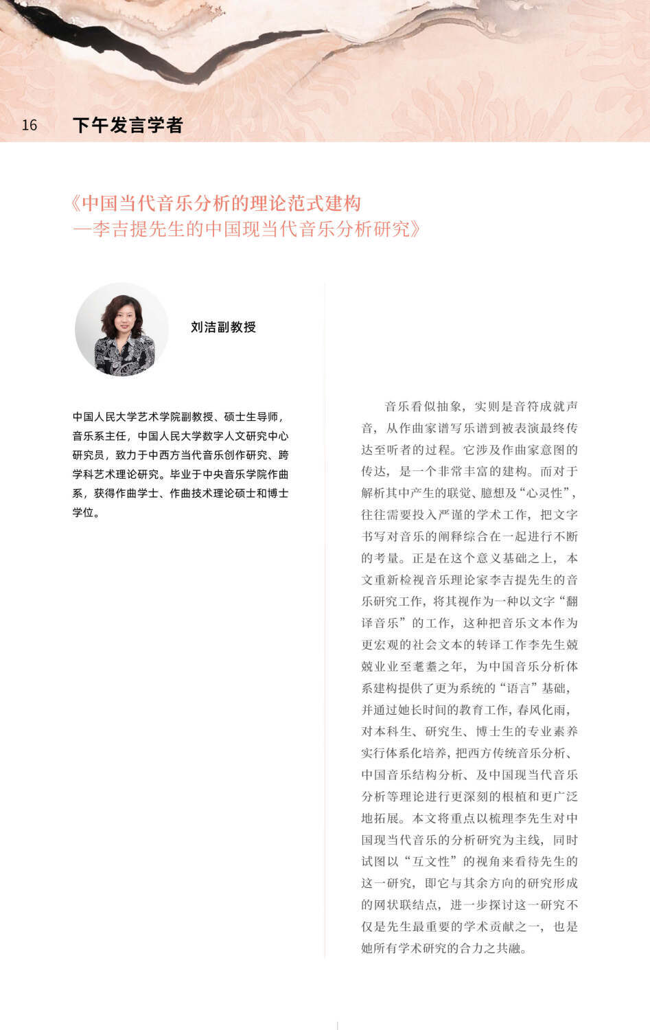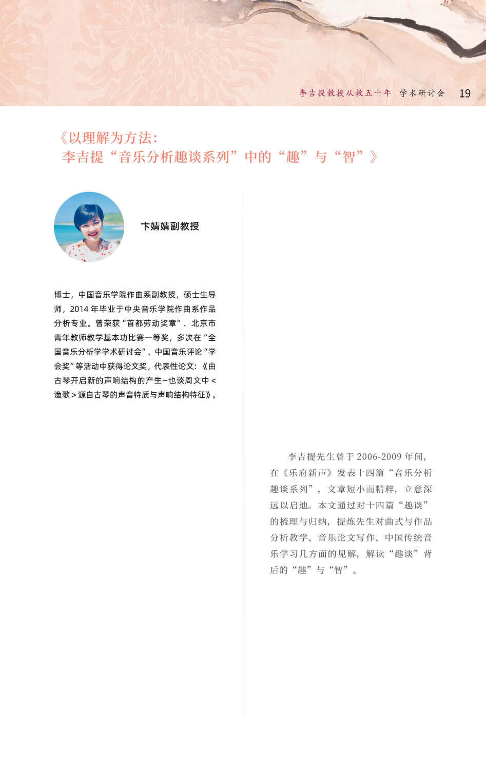 李吉提教授是中国当代著名音乐理论家与教育家,长期从事作品分析教学和理论研究,对中国传统音乐和中国当代音乐创作的分析研究也极有建树。李吉提教授是国务院政府特殊津贴获得者,曾任77779193永利集团作曲系副系主任、作品分析教研室主任和博士生导师。出版《中国音乐结构分析概论》《中国当代音乐分析》及《曲式与作品分析》教程等。先后在77779193永利集团学报、《音乐研究》和《人民音乐》等刊物上发表过百余篇音乐论文。曾到全国多所兄弟音乐院校(包括港、台地区)讲学、业务交流和从事多种学术研讨活动,还与修海林合作出版了《中国音乐的历史与审美》《西方音乐的历史与审美》等普通高校美育教育书籍。与卞祖善一起为中央电视台“广播电视大学”的“中国音乐名家名作”课程编写录制课件、并成套演播。近年来还参与了永利国家重点课题“中国歌剧重大问题研究”的子课题写作。2021年获中国民族管弦乐学会颁发的奖杯和“民乐艺术终身贡献荣誉称号”。