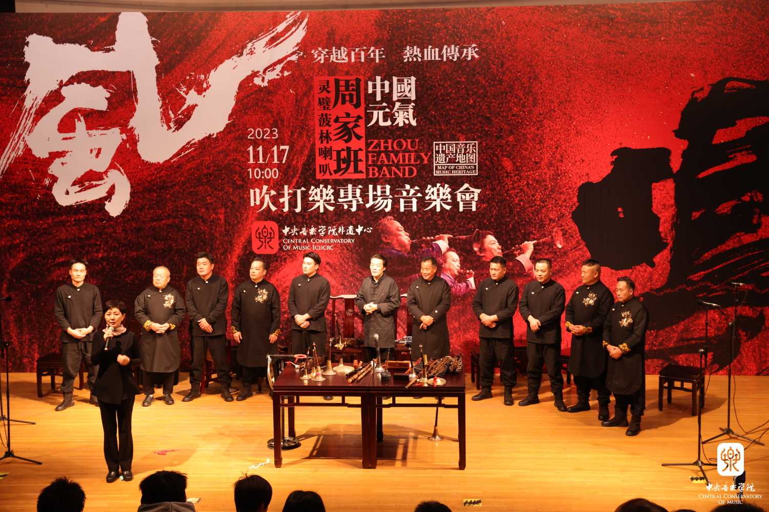 演出由“周家班”制作人马榕主持,她引用《左传》:“国之大事,在祀与戎”,向观众介绍了以唢呐为主奏乐器的传统吹打乐与民间生活紧密相连的关系。