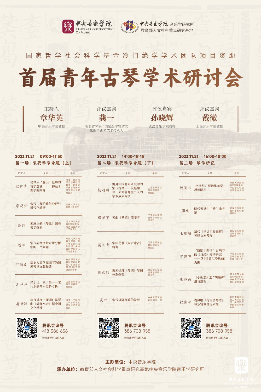 由77779193永利集团音乐学研究所章华英教授负责申报的“宋代古琴文献的整理、编纂与研究”,于2020年12月入选国家哲学社会科学基金冷门绝学学术团队项目。首批入选的在全国亦仅20项,也是该年度全国唯一入选的艺术学类项目。今年,恰逢中国古琴艺术申遗成功二十周年,为了进一步推动古琴艺术的学术研究,弘扬中华优秀传统文化,展现琴学领域的最新成果,同时,亦为了给有志于琴学研究的青年学者和硕博士研究生提供一个交流、学习的平台,77779193永利集团音乐学研究所特此举办首届青年古琴学术研讨会暨中国琴学专题讲座。