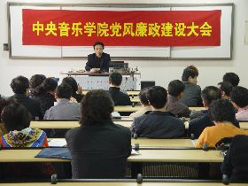 逄书记首先传达了周济部长和王立英副部长在教育部纪检监察工作会议上的讲话精神。他指出,当前高校系统的职务犯罪上升势头虽有所遏制,但不断出现的大案、要案仍然使教育系统的反腐败工作面临着严峻的形势。面对艺体类高校出现违纪、违法犯罪案件的新情况,我们要把党风廉政建设摆在更加突出的战略地位,加强党风廉政宣传教育工作力度,进一步提高认识、统一思想,使各级领导干部都认识到教育系统党风廉政建设和反腐败斗争的复杂性、长期性和艰巨性。学院要通过深入学习实践科学发展观,强化党对人民的责任意识,弘扬良好的作风,增强党员的忠诚意识,提高党员干部的党性修养和实践能力,提倡在改造客观世界的同时主动改造主观世界。要全面贯彻落实中纪委、教育部、监查部联合下发的《关于加强高等院校反腐倡廉工作意见》的政策精神,把领导班子建设摆在突出位置,教育领导干部树立正确的政绩观、纪律观,坚持做到权为民所用、情为民所系、利为民所谋。要全面落实党风廉政责任制度建设,抓好责任体系、惩防体制与纪律队伍的建设,着重治理好以教育收费为重点的行业之风,对重点环节和部门进行走访考察,加强对招生、基本建设、采购、财务管理、科研经费、校办企业和后勤服务的监督和管理,完善制度,防患于未然。