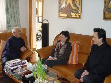 吴祖强教授高兴地将客人请进家中。他首先对教育部领导的关怀表示感谢,并代表学院感谢教育部多年来对艺术院校的支持。吴启迪副部长代表教育部和周济部长祝吴祖强教授新春快乐,身体健康,感谢他为我国音乐事业所作出的贡献。会谈中,大家还就音乐学院的建设发展、在大学生中普及高雅音乐等问题交换了意见。最后,吴祖强教授向吴启迪副部长一行赠送了自己的作品光盘。