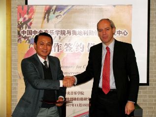 教授特别提到了今年五月份在北京现代音乐节上所举办的“奥地利作曲家阿诺尔德·勋伯格的音乐作品及其艺术思想研讨会”以及“勋伯格专场音乐会”。这些活动充分展示了中国音乐家在勋伯格研究和表演等方面的实力。他相信,此次合作,必将推动勋伯格音乐及其思想在中国的传播和研究。