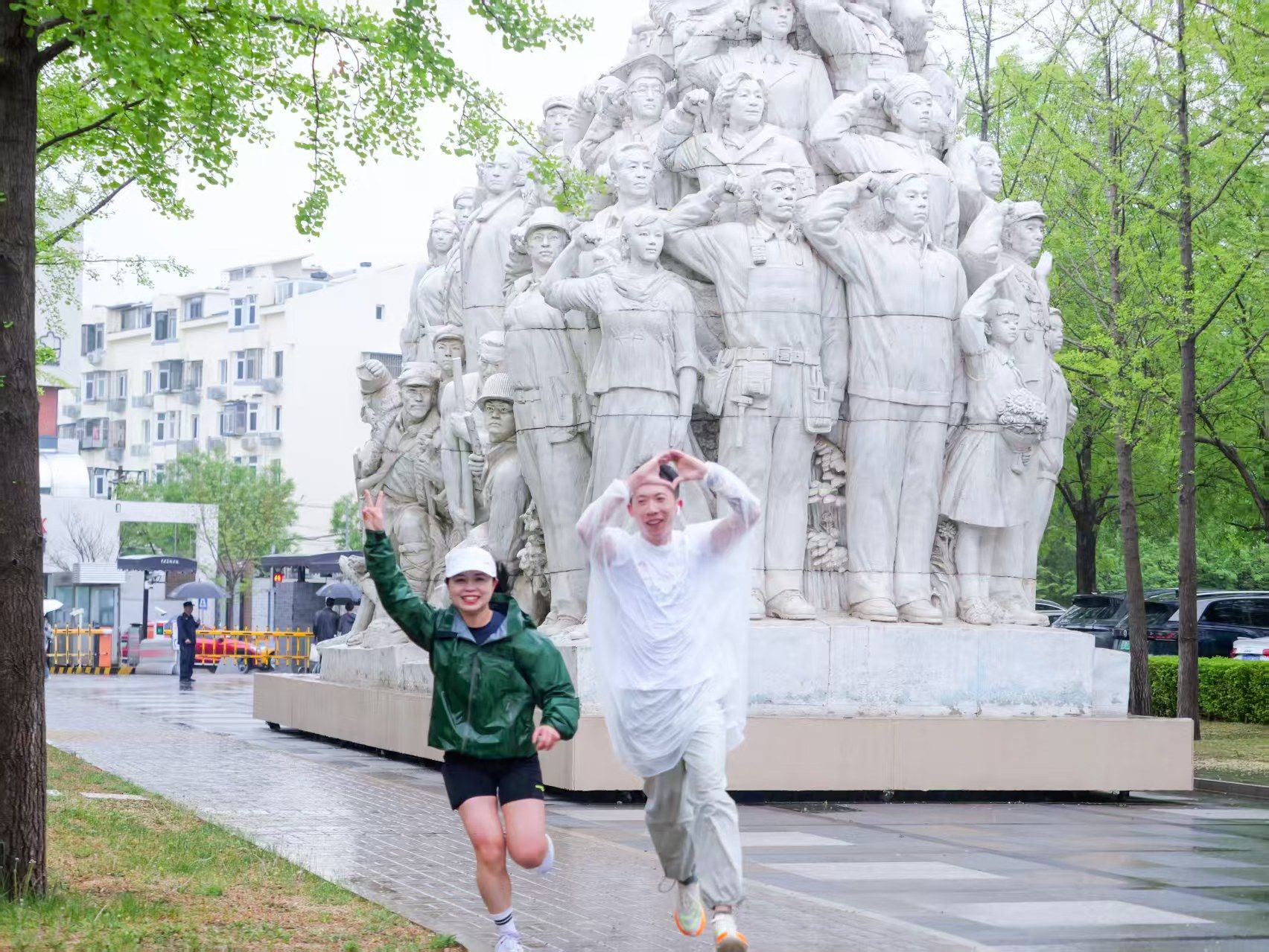 活动当天雨水连绵不断,随着发令枪一声鸣响,大家冲进春雨旋律中的青春校园。跑道途经校园标志性的建筑和雕塑,高校跑团代表从延安时期一路走来的老教授雕像注视的小径穿过,从建党百年大型主题雕塑《信仰》的旁边跑过,与《思想者》擦身而过,将运动激情与美学体验融为一体。此次健跑系列活动以跑步为媒,用艺术中的延安精神贯穿活动始终,不仅延续了延河跑团联盟“以跑促联”的传统,更通过艺术赋能拓展了体育文化的内涵。
