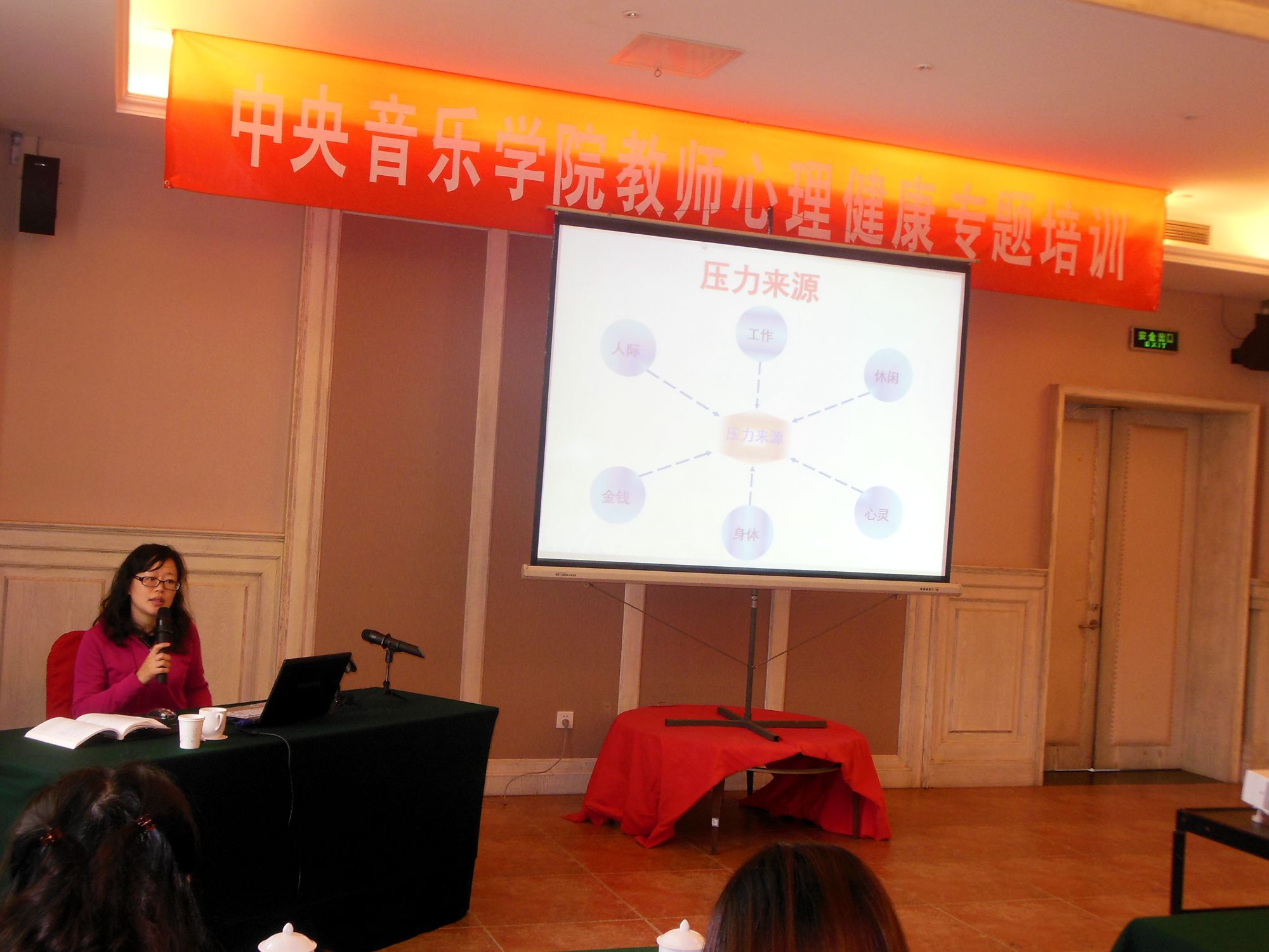 现代生活节奏紧凑,教师课业压力大,专业艺术院校更有其特殊性,大部分课时均为“一对一”小课,教师课业压力大,很容易造成职业倦怠。为减轻我院教师的精神压力和心理压力,提高情绪调节能力,促进身心健康,做学生爱戴敬仰的品行之师、学问之师。工会于2013年10月23日开展了“打造魅力教师”教师心理健康知识专题培训。针对老师现存的实际压力进行心理疏导与排解。
