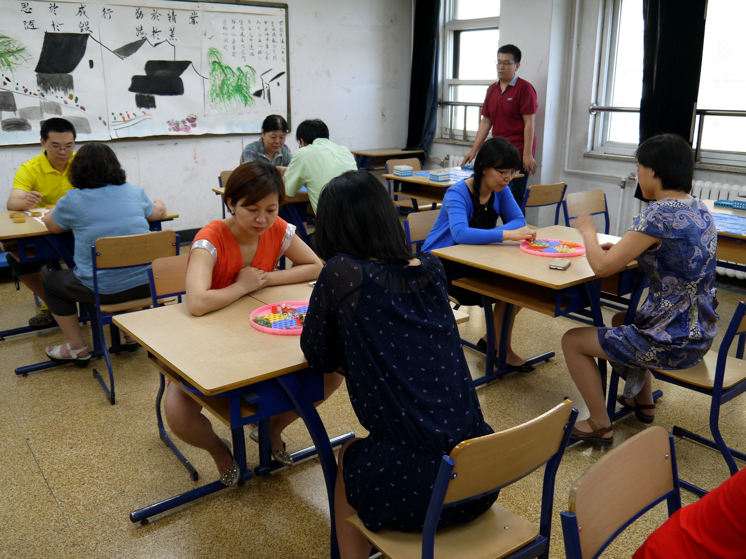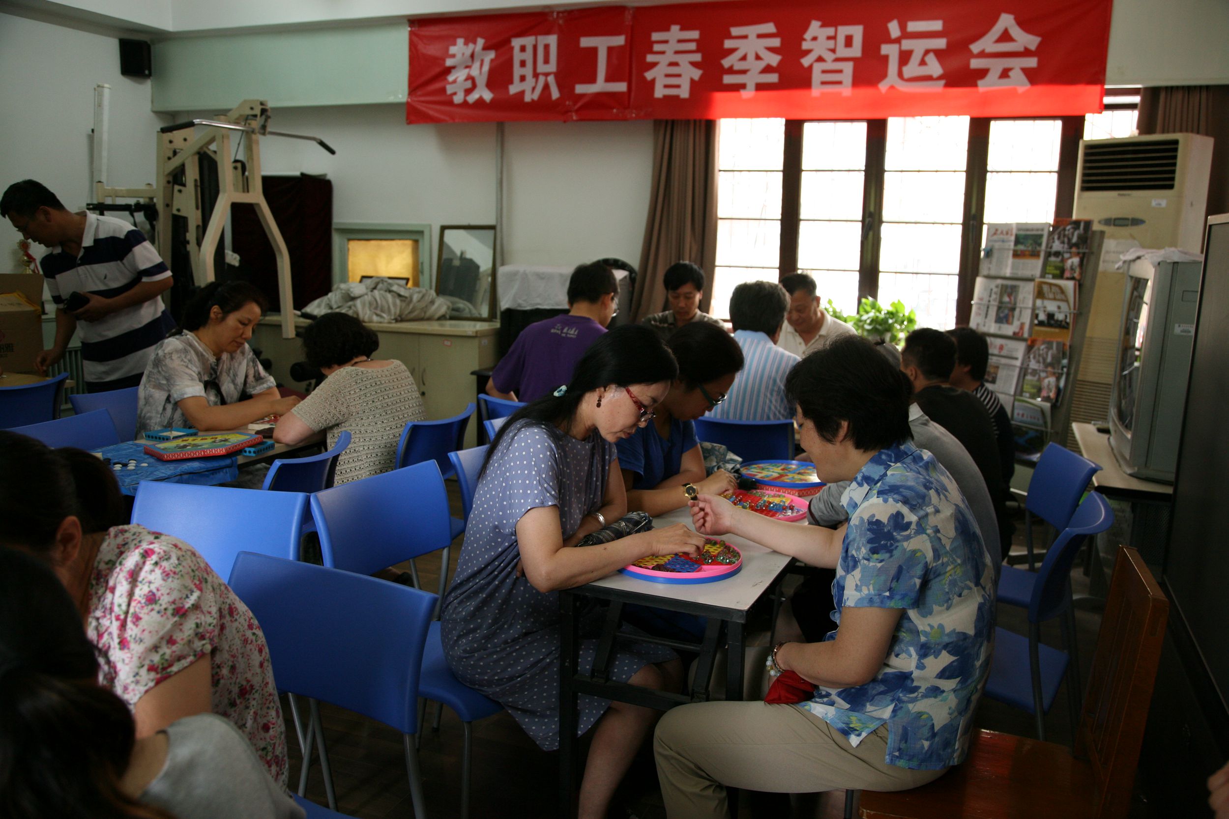 中午时分老师们三五成群的前往工会活动室,未到比赛时间就纷纷赶来为比赛热身。本次智运会共设中国象棋、跳棋、五子棋、扑克牌四个比赛项目。全院教职工近20个部门老师参加,热闹非凡。扑克牌敲三家比赛更是精彩,不仅参赛者兴致盎然,还吸引了众多围观者,帮着出主意。最后决出了象棋比赛第一名:王振国;第二名:李传东;第三名:赵联平。跳棋比赛第一名:刘红;第二名:王燕;第三名:闫琦、王昕、龚晓婷。五子棋比赛第一名:杨明英;第二名:王京超;第三名:柯杨。扑克牌比赛第一名:党云燕李小曼徐连莉;第二名:金立新、尤之龄、钟培铭;第三名:齐英、岳林、褚军。