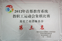 团结有力量,竞争出成绩。我院运动员充分发扬勇于拚搏的精神,在所参加的项目乒乓球、围棋、象棋、趣味等赛事均取得优异成绩。参加集体踢毽的老师,他(她)们放弃了许多休息时间,早晨7:30到校进行练习,中午12:30进行每天的第二次练习,这种勇于争胜的精神实在令人感动,并取得了第二名的好成绩.孙淑萍获女子800米第一名,曹杰获足球射门第一名,中国象棋团体第三名。为学校赢得了荣誉。