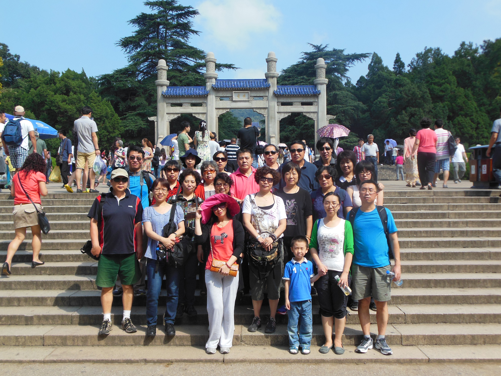 2013年9月20日一早,旅游团抵达南京,早餐后游览5A级国家风景名胜区中山陵,当游览车驶入景区,道路两边茂密的梧桐树高大壮硕、葱郁如盖,充满金陵古都那悠远的年代感,带给人们心灵的滋养。广场台阶上矗立着花岗岩牌坊,正中间刻着“博爱”是孙中山先生手迹,也是孙先生人生的追求和座右铭。延392级台阶一路上行,到达祭台,门楣上刻有孙中山手书“天地正气”,堂中央有孙先生大理石坐像,栩栩如生,在灵堂庄严肃穆的氛围中,充分感受孙中山“天下为公”和为国为民的博大胸怀。
