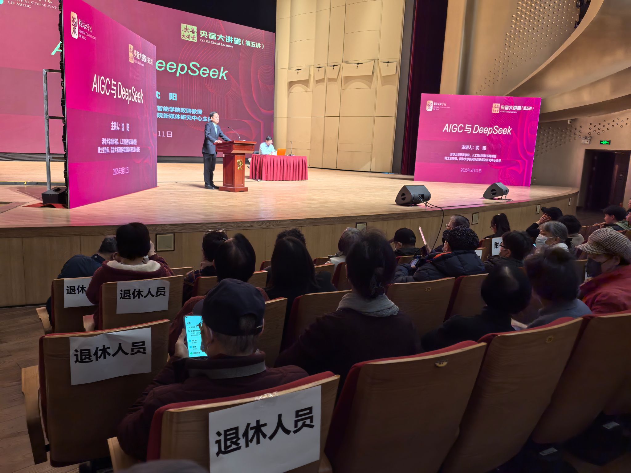 活动筹备阶段,学校党委高度重视离退休干部参与需求。党委副书记李众同志特别指示:"要为有意向参与的老同志做好服务保障,优先安排声乐歌剧厅一层观演区。“参加“央音大讲堂”学习通知发布后,离退休教职工积极响应。讲座当天,多位老教授提前抵达会场,展现出与时俱进的学习热情。