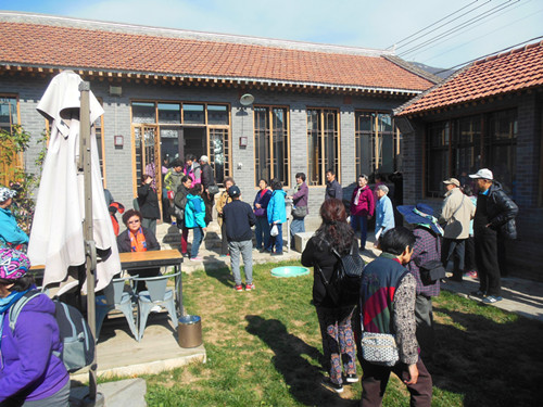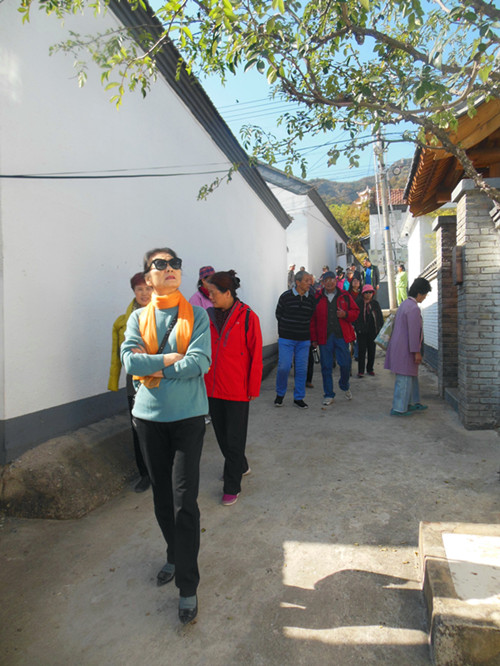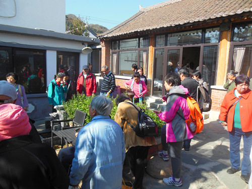 参观花海后我们来到了田仙峪村国奥休闲养老机构,这是一个创新型的养老院,四合院结构。外来旅游者可以短期食宿,有喜欢这个地方的老年人还可以三、四家合租长期租住,因此各个院落都修缮得整齐有品位。