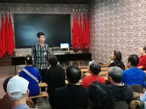 我们还参观了歌曲创作地旧址,最后在纪念馆的小会议室里开了一个小型座谈会,请曹老师讲话,接着退休直属党支部书记陆泽红、铁运离退休党支部书记张军,和学生党员代表王锐发言谈了感想。
