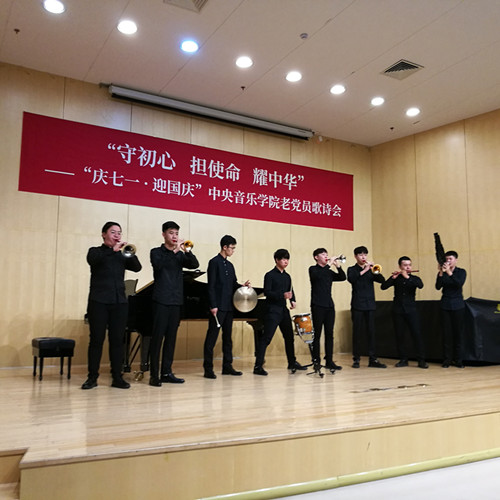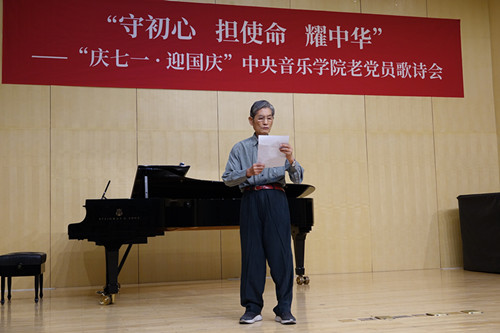 歌诗会在民乐系同学用以旋律热烈欢快,激越奔放的吹打乐《淘金令》拉开序幕,老党员成秉安同志和音乐学系胡敏鸣同学担任歌诗会主持。整场歌诗会形式多样、精彩纷呈。
