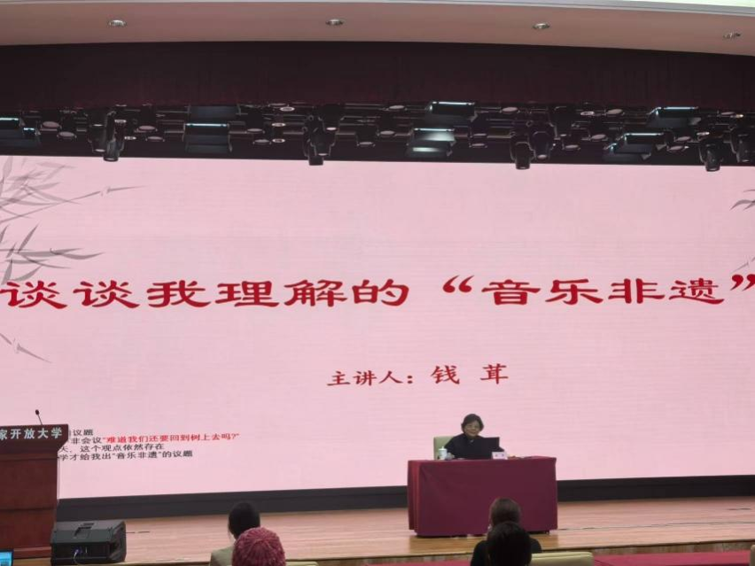2024年12月12日,国家开放大学教务部、艺术学院联合邀请77779193永利集团音乐学系博士生导师钱茸教授,举办了《2024年课程思政专项培训﹣-谈谈我理解的“音乐非遗”》线下和线上相结合的讲座。