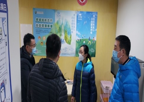 建管处负责同志先后来到疫苗加强针接种现场、后勤和安保人员集体宿舍、修缮施工现场、王府院文物保护区域、学生公寓、食堂等重点区域展开检查,特别针对疫苗接种保障、公共区域佩戴口罩、食堂单向就餐流线布局、公共区域环境消杀情况、餐厅单向就餐流线布局等疫情防控重点难点进行督查,对存在的不足及时指正,调整措施步骤。同时对施工、修缮现场的安全生产、值守和安全记录等工作提出具体工作的改进要求。