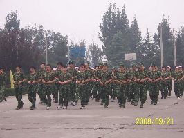 2008年9月18日-28日2008级新生到北京南口参加军训。同学们克服了很多训练和生活中的困难,圆满完成了军训任务。对国防建设有了比较系统的认识,对军营生活有了切实的感受,培养了集体主义精神,增强了纪律意识和集体荣誉感,是大学新生入学以来生动的第一课!