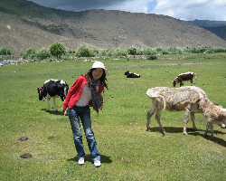 西藏的山川一座座相连,蓝天白云相互映衬,真是不禁想起李娜的那首< 青藏高原>,身临山中,放声高歌^^^才真正体会了这首歌的深刻含义,而且是那样陶醉,那样感动,我想最能表达我心情的真的是用"感动"这个词来形容.此时,中国的地大物博,壮丽山河,心旷神怡,层栾叠嶂等等,各种各样的感受都随之而来.更让我感受到作为一个中国人的自豪能有这样神圣的土地,真是让人赞叹.他们的生命里唯有佛祖的虔诚,他们的血液里流淌的是佛祖的灵魂,他们的精神里倾泻的是佛祖的宽容.对他们来说心中总有这么一个"神"支持他们的生命,所以他们的精神世界无限广大,无法抗拒。他们对于贫穷的概念是那样伟大,一个木屋搭建在一个极为荒僻的一个村子前的半山腰上,房屋简陋,没有水,没有电,煤炭烧水,露天厕所,苍蝇群飞且视而不见…在这样的环境下,主人给我们煮酥油茶,做青稞酒,一杯一杯递给我们的热情和带有沧桑的朴实无华的神情都深深打动了我,他们的微笑似乎告诉我们,他们生活的很愉快,也无比充实。想想平时的我们那么奢侈享受,又不懂得珍惜,也不懂得满足,还常常自寻烦恼,真是觉得很惭愧。更值得难忘的是主人的一句:“宽容一点……”使我们这些娇气又不懂事的“孩子”似乎明白了什么,又醒悟了什么。