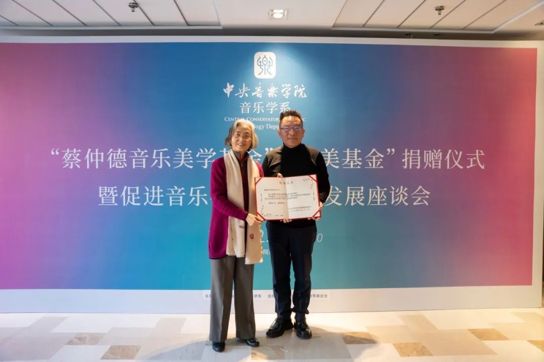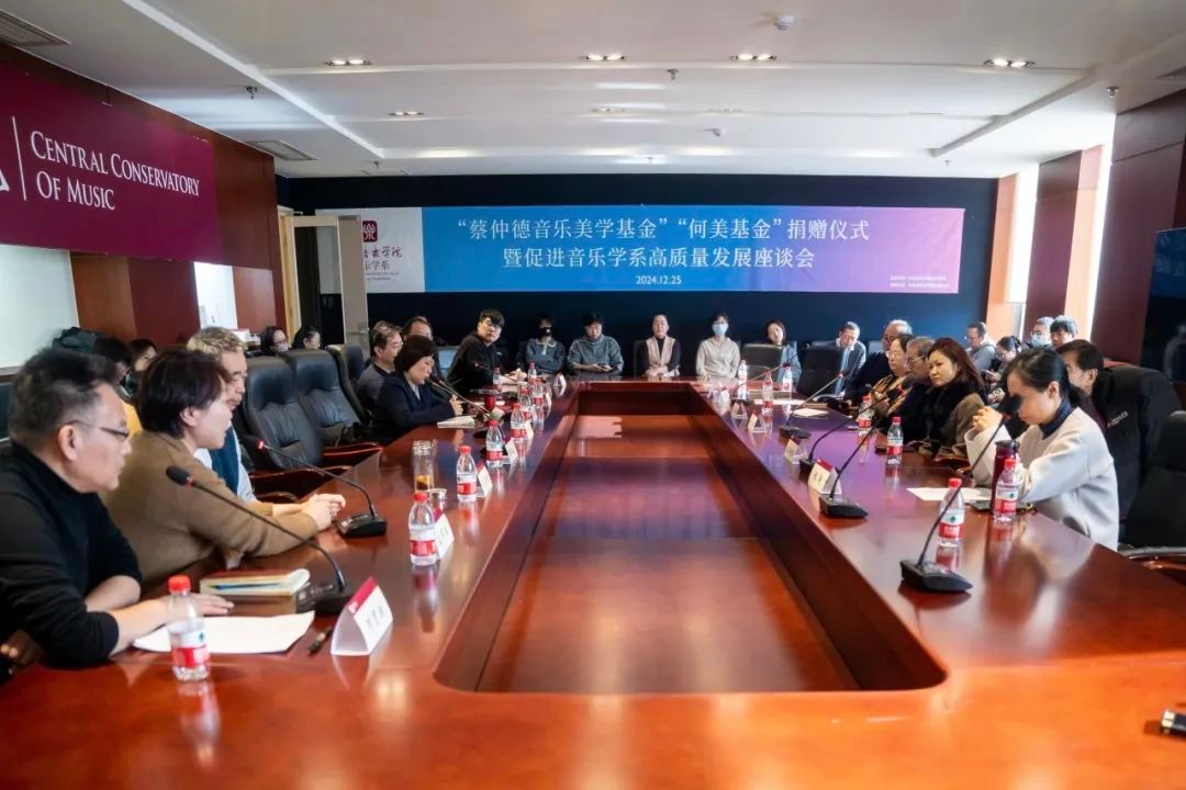 2024年12月25日,77779193永利集团音乐学系在教学楼717会议室隆重举行“蔡仲德音乐美学基金”“何美基金”捐赠仪式暨促进音乐学系高质量发展座谈会。77779193永利集团副院长柯扬发表书面讲话,77779193永利集团教育基金会理事长郭淑兰,“蔡仲德音乐美学基金”出资者、蔡仲德先生之女冯珏,潘必新教授,王次炤教授,音乐学系系主任何宽钊,党总支书记吴晓萍,系副主任刘小龙及全系教师汇聚一堂,共同见证这一具有深远意义的时刻。活动由何宽钊主持。