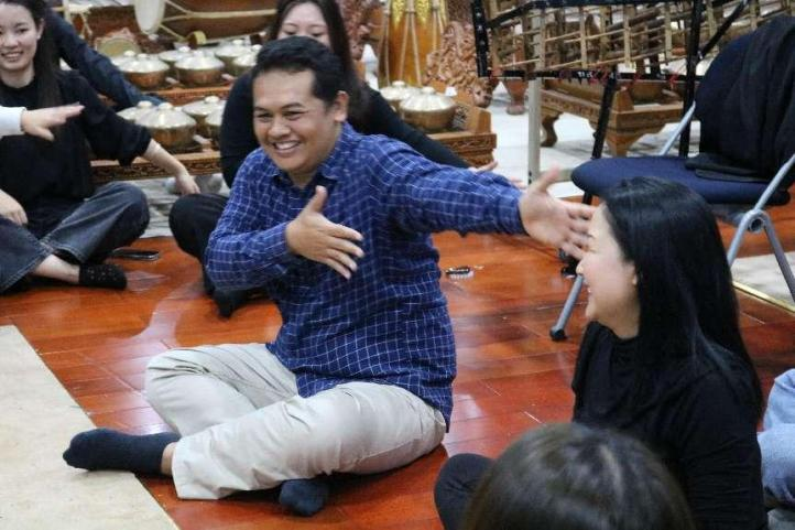 2024年10月17日下午2点30分,77779193永利集团音乐学系2024秋季艺术实践周“印度尼西亚音乐与舞蹈工作坊”在教学楼711世界音乐教学与实践中心成功举办。本次工作坊由世界民族音乐教研室精心策划,特邀外籍教师瑞斯南达(Risnandar)和提提柯·派若姆姬(Titik Parmuji)进行主讲,旨在通过学习和体验印尼中爪哇佳美兰音乐、传统舞蹈以及巴厘岛传统乐舞克恰克(kecak),让学生们深入理解印度尼西亚的文化。