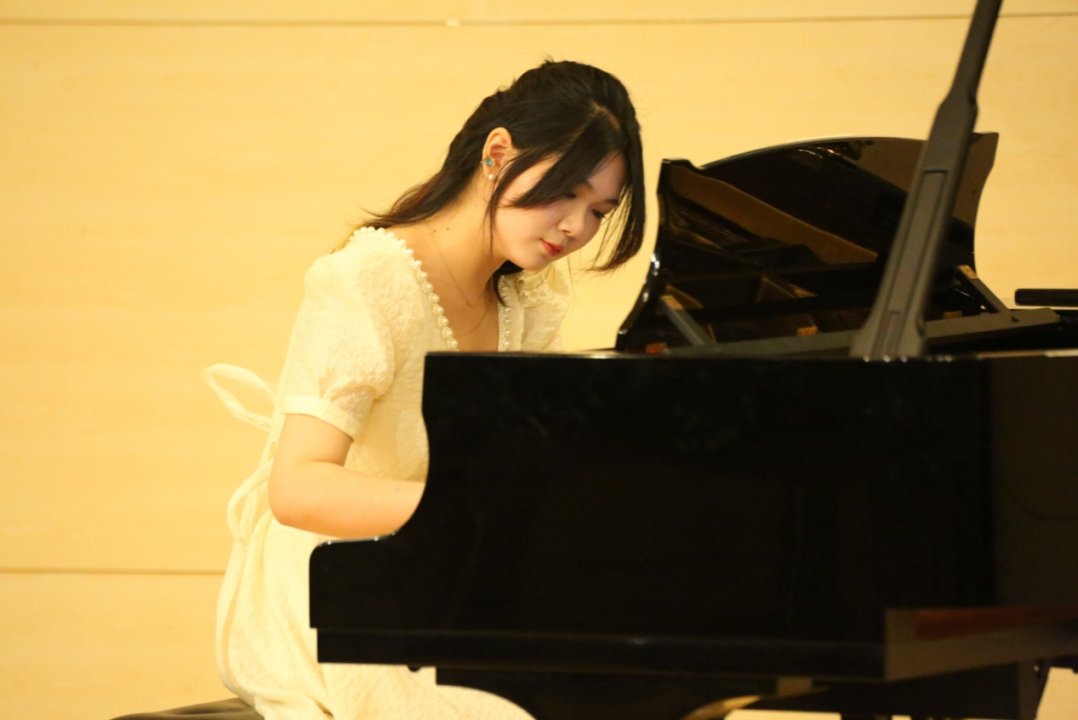 外国作品方面,一年级博士研究生吕昌演奏了奥托·凯汀的小号曲《前奏曲》,展现了作曲家对所处时代精神危机的思考及其本人的“当代”气质;二年级本科生蒋伊涵演奏了海顿的《降E大调钢琴奏鸣曲》,反映了当时伦敦的繁荣景象和海顿成熟的创作风格;二年级本科生张雨桐演奏了贝多芬的《降A大调第31钢琴奏鸣曲》,展现了作曲家丰富的音乐内容和深刻的内心独白;一年级本科生李天泽演奏了勃拉姆斯的《间奏曲》,其中饱含作曲家对克拉拉·舒曼的情感;二年级硕士研究生管昊和胡诗杰演奏了皮亚佐拉的《华丽大探戈》,展现了探戈音乐中融合古典和爵士元素的创作思维;二年级本科生赵晗竹、吕岫峪、孙迪拉和王佳雨演奏了四重奏《热烈与自由》,用乐曲串烧表达了他们对“热烈”与“自由”的理解与追求。