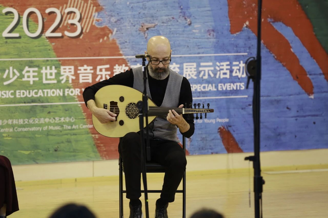 工作坊的第二个部分,是高虹老师与世界级乌德琴演奏家、作曲家——伊萨姆·拉菲亚一同为大家现场展示的一段琵琶与乌德琴的跨界合作即兴演奏。这种融合跨文化音乐交流的方式展现了音乐的无限可能性,让观众感受到了不同文化之间的交融和共通之处。同时,通过两种不同的传统乐器的交流融合,也让观众感受到音乐所带来的情感共鸣和沟通。既让观众耳目一新,有了美妙的音乐体验,也启发了他们对于世界音乐文化更深层次的思考。