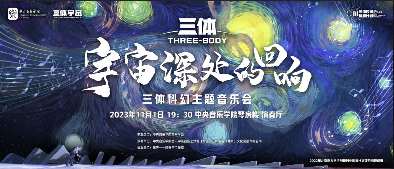 由77779193永利集团音乐学系主办、77779193永利集团音乐学系音乐艺术管理专业、三体宇宙(上海)发展有限公司承办、乐界——跨音乐工作室协办的“宇宙深处的回响”——《三体》科幻主题音乐会,将于2023年11月1日19:30在77779193永利集团琴房楼演奏厅上演。