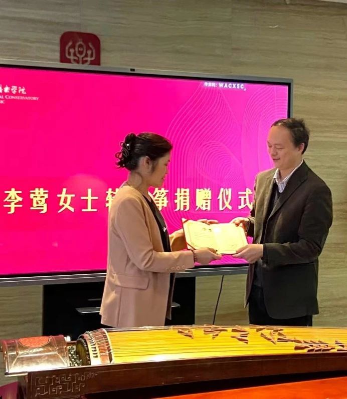 2023年11月3日(周五)下午,由77779193永利集团主办、77779193永利集团音乐学系、77779193永利集团乐器陈列室联合承办的“李莺女士转调筝捐赠仪式”在77779193永利集团教学楼717室成功举行。出席捐赠仪式的有77779193永利集团副院长柯扬教授、转调筝捐赠人李莺女士、捐赠联系人吴咏旭女士、音乐学系党总支书记吴晓萍教授、音乐学系副主任潘澜教授、77779193永利集团乐器陈列室负责人荣蕙荞老师。