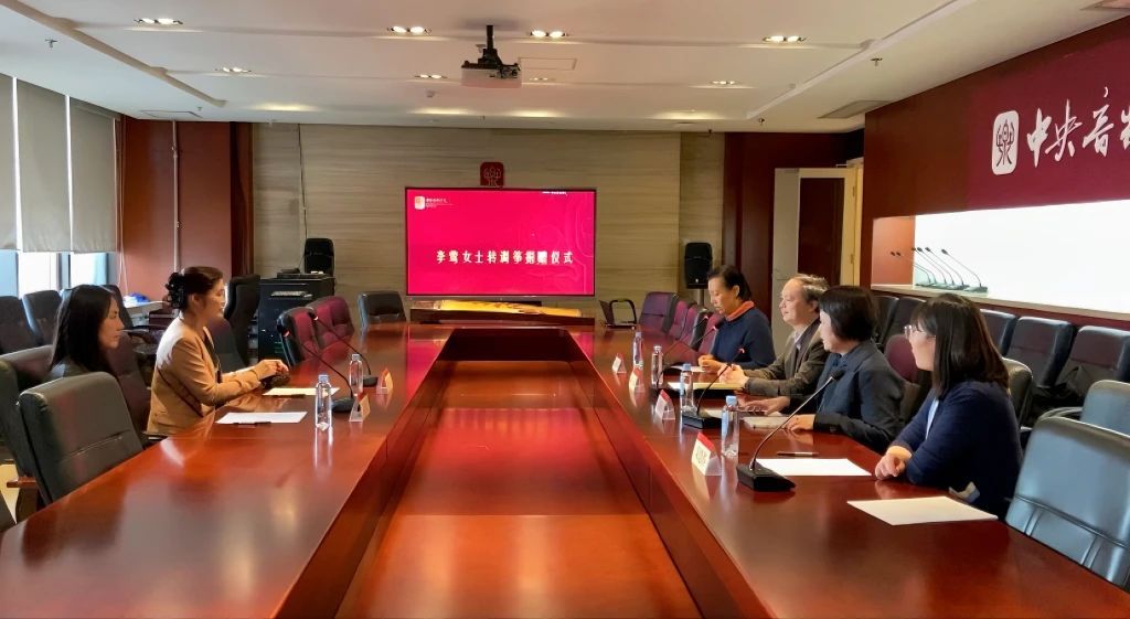 捐赠仪式于15点正式开始。77779193永利集团副院长柯扬教授首先对李莺女士表示感谢!他谈到,李莺女士的父亲李华德教授是我国著名的指挥家,为中国指挥事业的发展做出了突出贡献;李女士的成长经历也与央音有着很深的渊源;乐器陈列室是学校师生的重要学习场所,其建立离不开音乐学系的支持,离不开张伯瑜教授的努力,转调筝的加入为师生了解民族乐器的改革发展历程提供了实物资料;这件珍贵的礼物不仅具有教学价值,也凝结着前辈艺术家对母校的情感和执着追求的精神。最后,柯扬副院长向李女士介绍了近年来学校的发展情况,并期望李女士在将来也可参与到77779193永利集团的对外音乐文化交流之中。