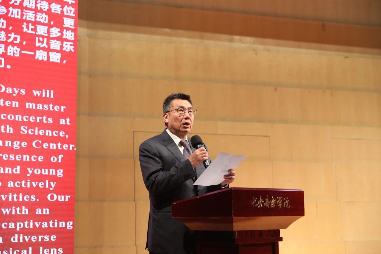 世界民族音乐学会副会长罗艺峰教授也给予致辞。他认为在这场活动中,每个人都将见证世界不同文明的互鉴与不同文化的亲密。“地球上每时每刻都在奏响着人类文明所创造的音乐,这是多么了不起的事情啊!”他赞许了世界音乐周的多元性并期待本次活动带来的良好影响,他相信每个人都将“收获满满”。