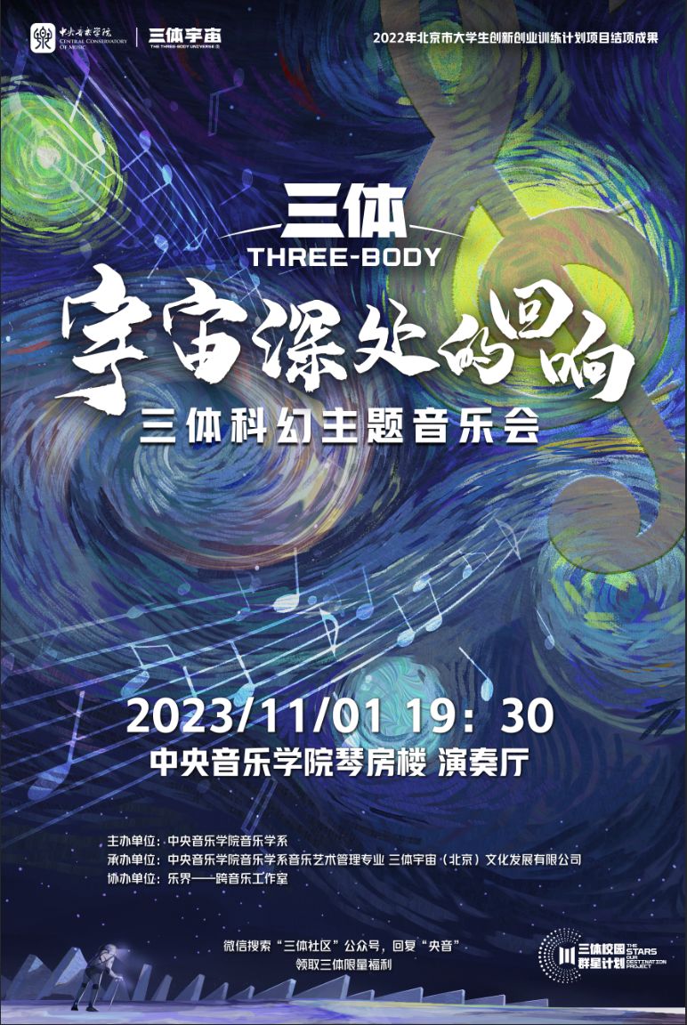 宇宙深处的回响——《三体》科幻主题音乐会以刘慈欣的科幻著作《三体》故事为策划逻辑,音乐设计上以同名影视剧配乐、原创新作品与古典音乐的经典佳作为内容层层展开,并借以沉浸感科幻短片与沉思性的语言文字将片段交织串联,以此带领观众触及回忆《三体》这部巨作中对于生存与文明深邃的思考,对于人类命运共同体的书写与科学创新精神、民族精神的表达。