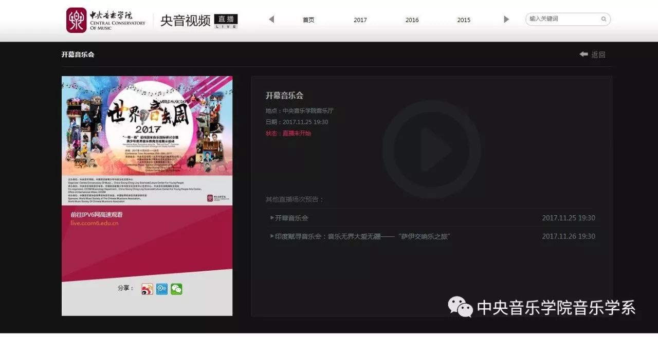 《世界音乐周2017》开幕式音乐会及印度赋寻音乐会之观看方式
