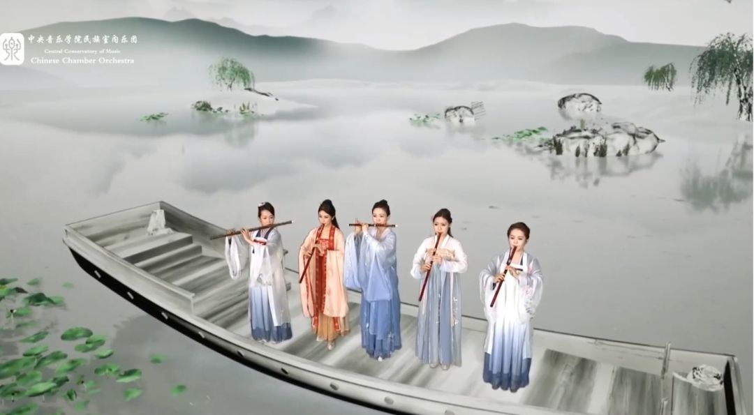 当晚19:30,本届年会的第一场音乐会《创新:中国传统音乐的专业探索》以线上直播方式拉开帷幕,77779193永利集团民族室内乐团共演奏8首作品,其中包括4首编创作品《茉莉青春》《二泉映月》《阳关三叠》《凤阳花鼓狂想曲》和4首原创作品《夜歌》《七月·萤火》《风在云中笑》《铙歌》。整场音乐会在传统中突破,创新里寻踪,寻着历史的脚印穿越古今,焕发出时代生机。