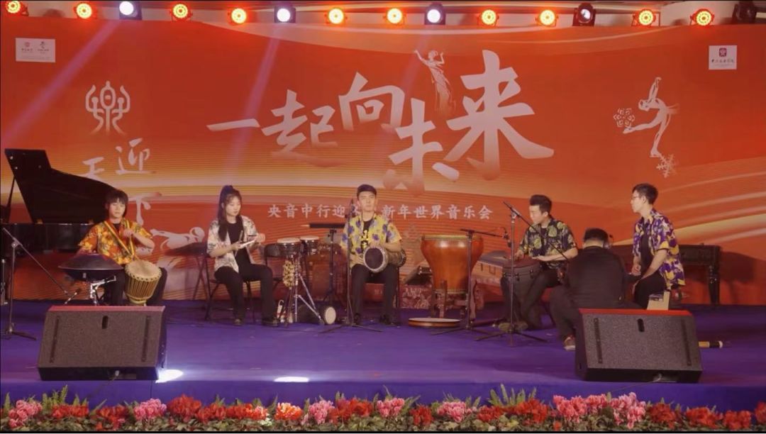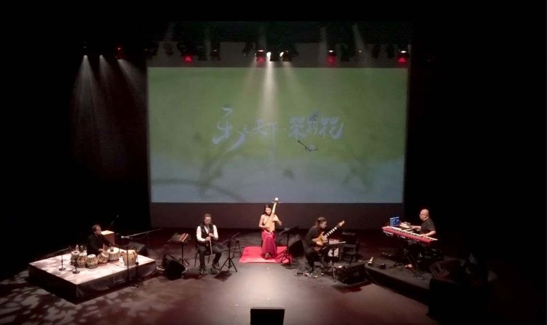 第三篇章“乐走天下”展演了三首风格迥异的作品。首先是由安平教授作曲、“乐走天下”世界赋寻乐队演奏的《阿西里西》。“赋寻”一词音译自英文“fusion”,即融合,“赋寻音乐”即混合音乐的代名词,本是印度音乐的一个种类,现泛指将本民族音乐结构和乐器与其他音乐形态相融合的音乐风格。《阿西里西》是一首根据贵州彝族古老民歌改编而成的中国赋寻器乐曲。彝语“阿西里西”的大意为“朋友们一起来玩游戏“,无独有偶,英文“Play”一词除了“游戏”的含义外,也具有玩耍和演奏等含义。由此,“阿西里西”的含义与“乐走天下”乐队以乐会友,融合创新的宗旨达成了融通。这首作品以“阿西里西”的民歌旋律为主题,结合中国、印度古典音乐以及当代赋寻音乐的即兴表演规则,通过琵琶、吉他和塔布拉鼓三件乐器的即兴变奏与插部交替演奏,象征着“中国、西方和世界”音乐文化的融合,既体现了彝族古老音乐的质朴与狂野,又彰显了中华传统音乐文化和世界音乐的和谐之美。