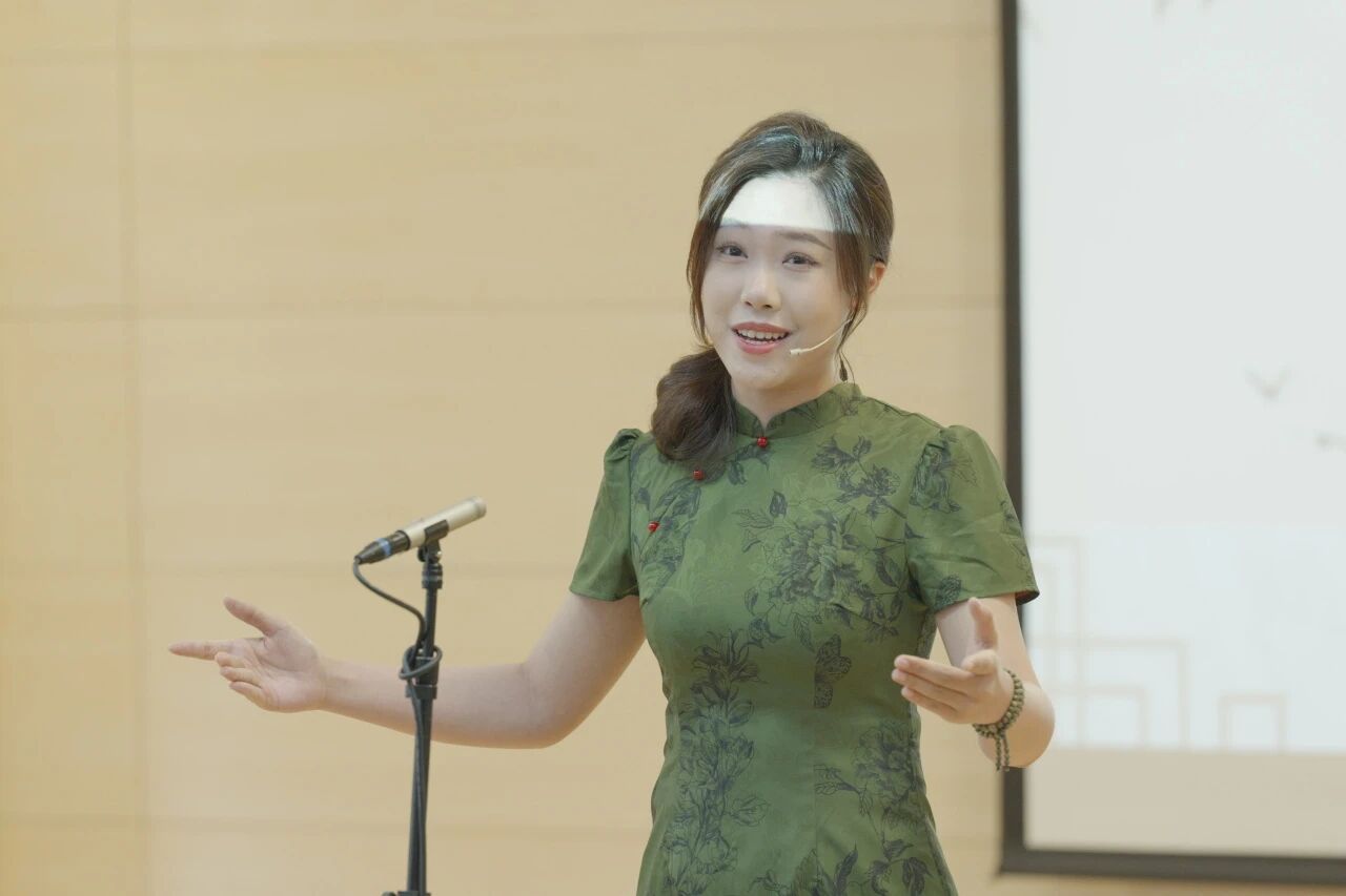 来自雷州半岛(闽南语分支地区)、成长于广州的谭茜文,用地道的闽南语演唱了一首闽南童谣《天黑黑》。她以充满童趣的演绎,不仅唤起了观众们的乡愁共鸣,更通过剖析方言音调与旋律的独特契合,揭示了童谣背后蕴含的地域生活智慧与情感温度。
