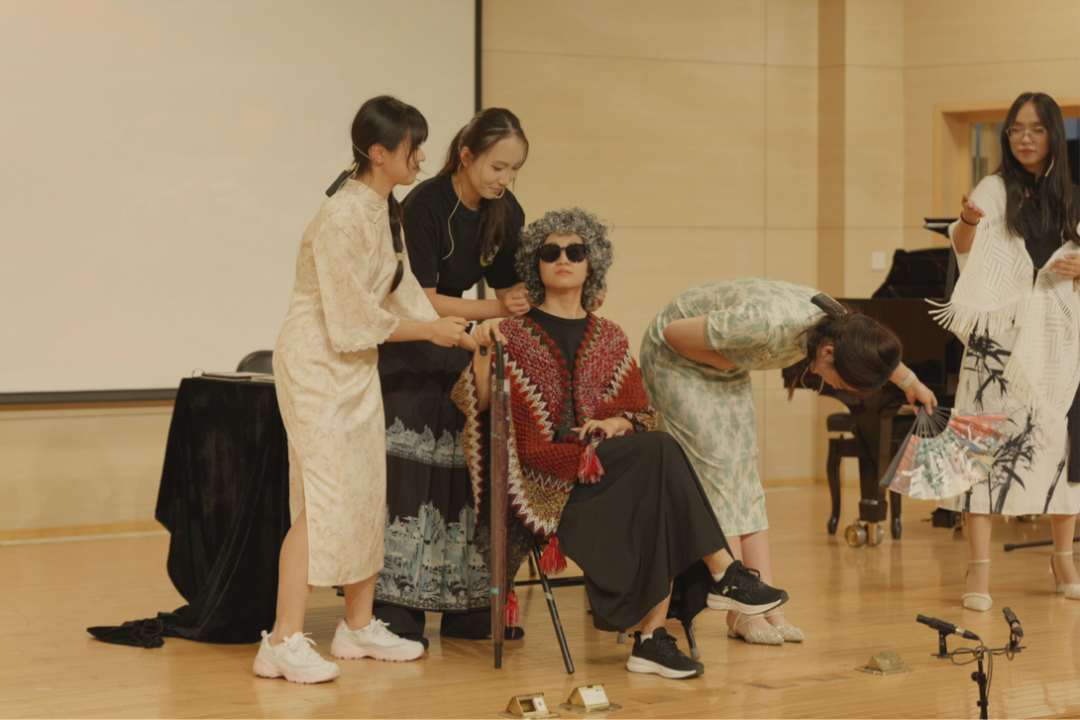 《音乐学系自救指北》则独出心裁地采用默剧的形式,仅利用字幕、伴奏与表演本身勾勒音乐学系学生的一天,带来复古又现代的视听体验。该节目由张弛、王睿、李欣睿、李姗珊、蒋伊涵、徐依婧、刘沫妃同学带来淋漓尽致的表演,同时穿插《培尔·金特》《“命运”交响曲》等等耳熟能详的音乐作品,让音乐学系学生妙趣横生又意外连连的校园日常在无声中跃然眼前,投映着在座每一位音乐学人生活中的笑与泪。