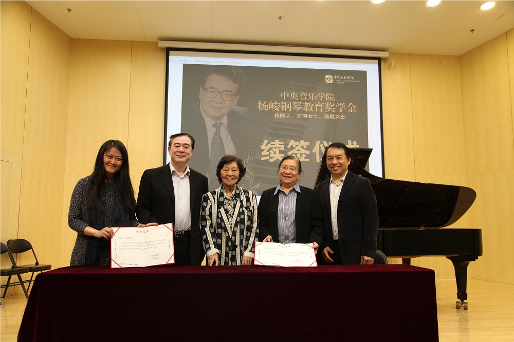 为了纪念我院已故著名钢琴演奏家、教育家杨峻教授为中国的钢琴教育事业所做出的毕生努力和杰出贡献,激励钢琴专业同学发奋学习、树立音乐理想,2011年起,杨峻教授的夫人、我院竖琴教授左因女士在钢琴专业设立了“杨峻钢琴教育奖学金”,每年捐赠一万元用于奖励基础薄弱但进步显著的同学。2016年合同期满后,左因教授提出继续设立奖学金的意向,同时杨峻教授的学生、旅意钢琴家居觐提出共同捐赠。