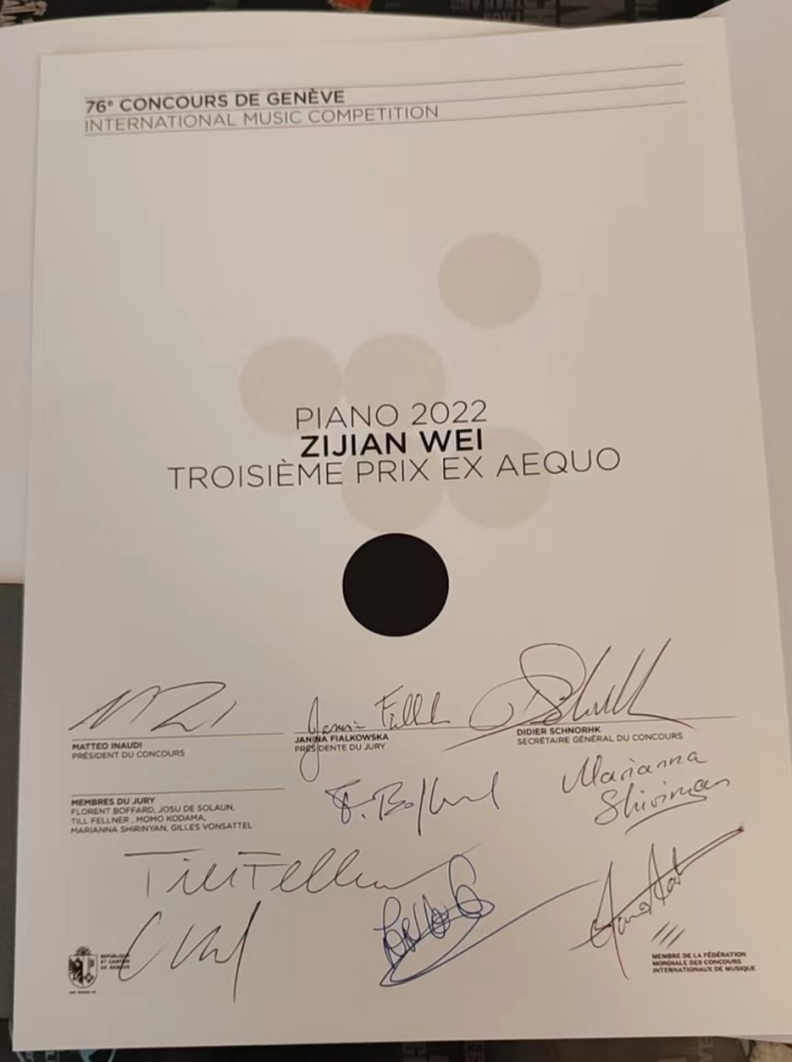 当地时间2022年11月3日晚,第76届日内瓦国际钢琴大赛大奖出炉,中国青年钢琴家韦子健凭借精湛的技艺、稳定的发挥,获得大赛三等奖。