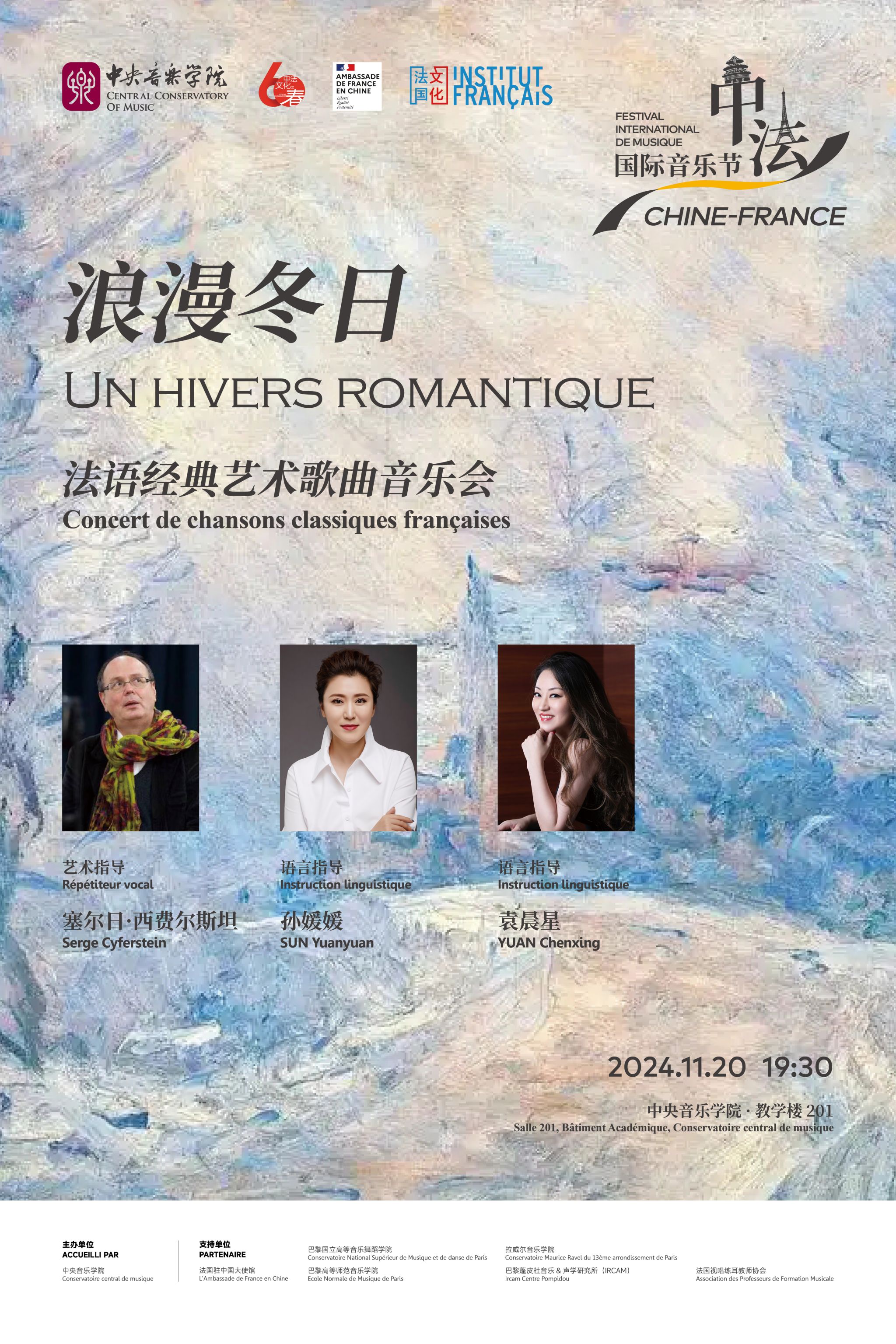 经历了大师课的沉浸式、细节化的打磨后,学生们以极高的语言水平和歌唱能力,为全校师生带来一场“浪漫冬日——法语经典艺术歌曲音乐会”。