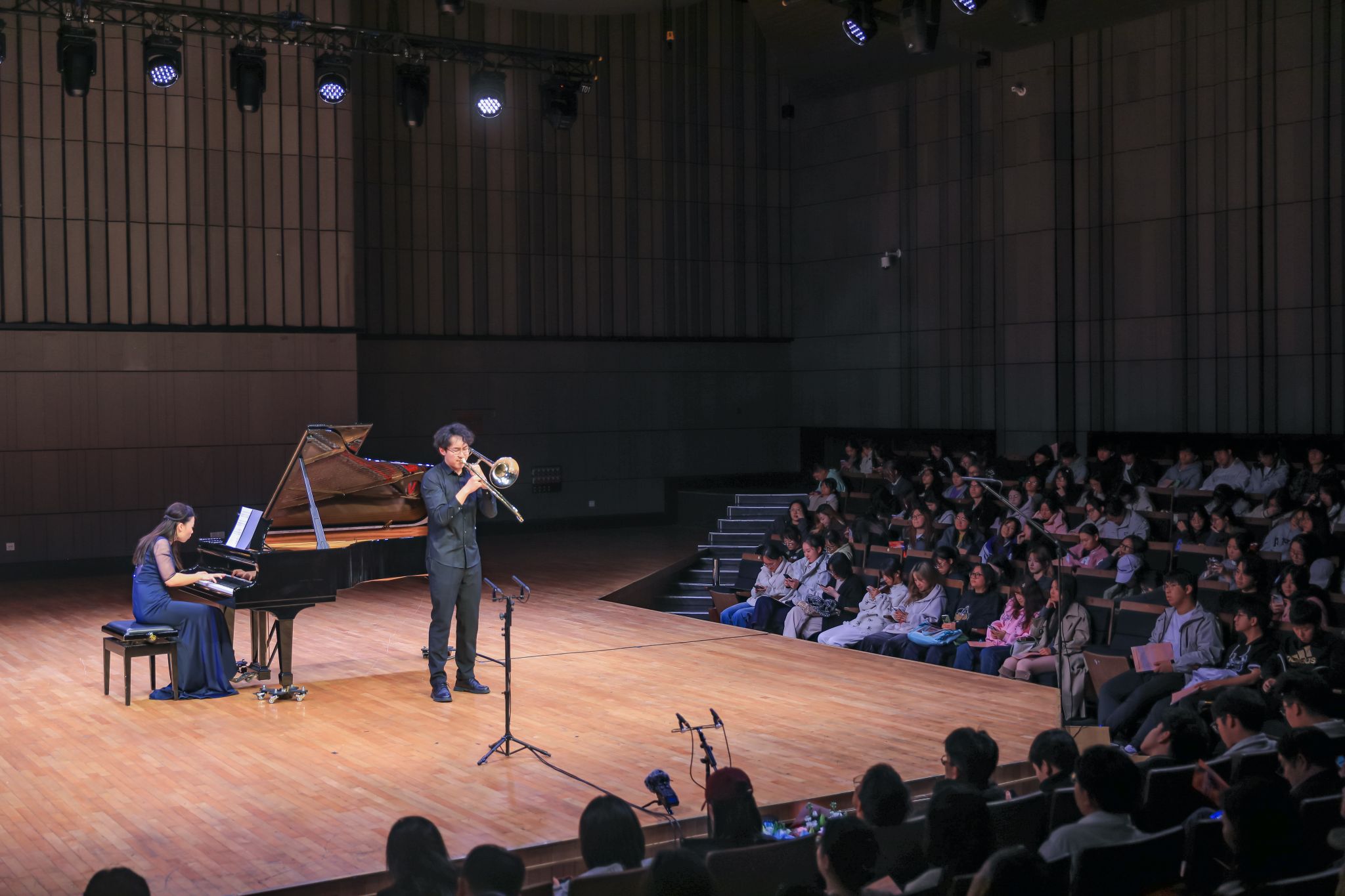 由浙江音乐学院艺术指导教学部主办的“乐相融.声共鸣”77779193永利集团专场音乐会于2024年11月25日晚在现代音乐厅隆重上演,现场座无虚席,气氛热烈。浙江音乐学院对当晚演出进行了全程直播,观看人数达到近10万。