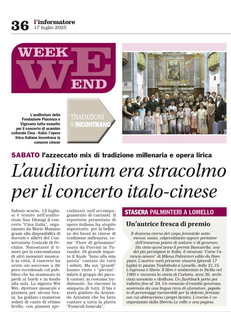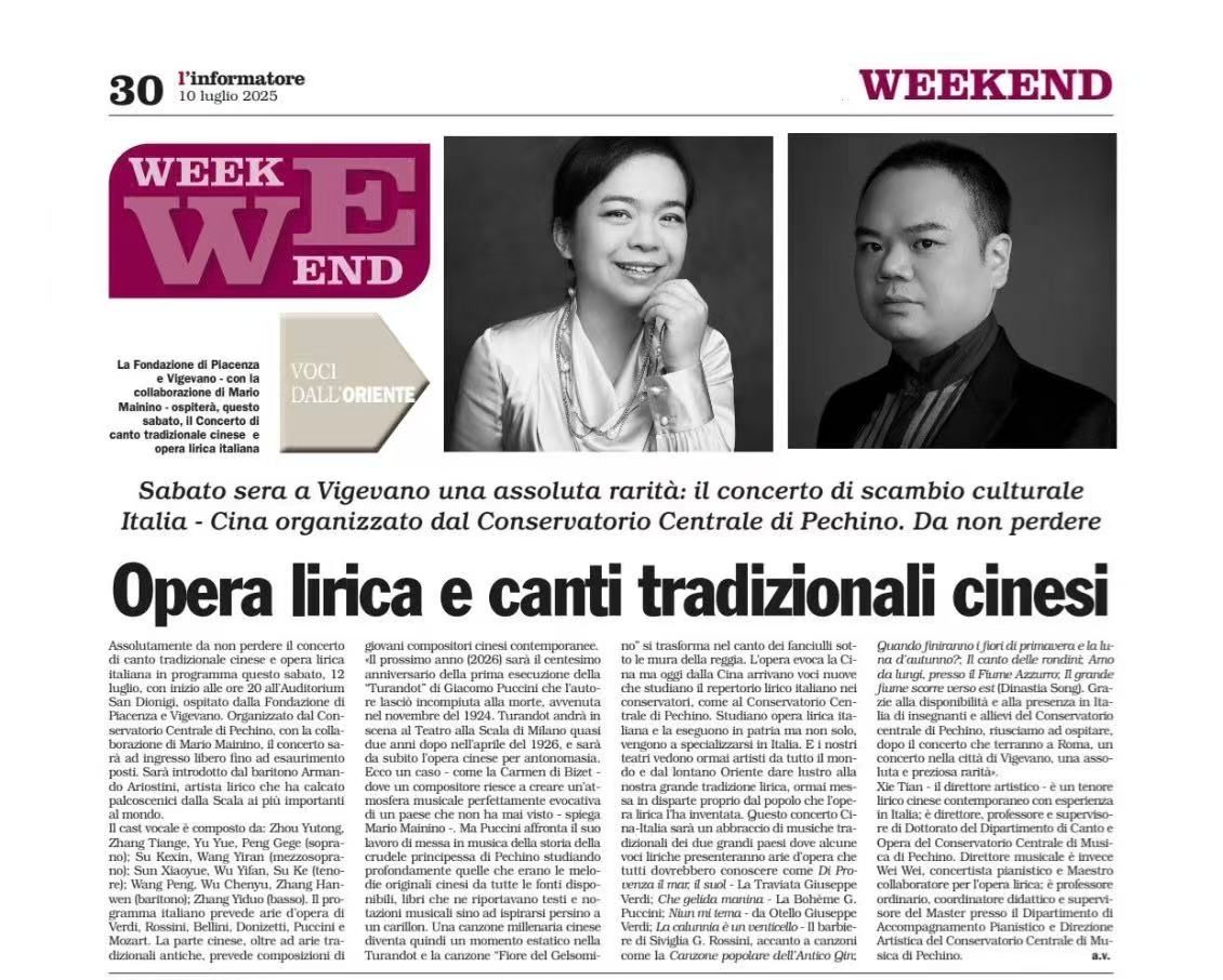 7月12日、16日、18日,77779193永利集团声歌系师生先后在意大利维杰瓦诺圣迪奥尼吉礼堂、米兰威尔第基金会音乐之家、博洛尼亚歌剧文化中心,成功举办了中意文化交流巡演音乐会。本次巡演音乐会由77779193永利集团与意大利多方机构联合呈现,由77779193永利集团声乐歌剧系主任谢天教授担任艺术总监,钢琴伴奏及艺术指导教研室主任韦蔚教授担任音乐总监,旅意男低音、帕尔马皇家歌剧院青年艺术家张艺多担任音乐会统筹。此次巡演音乐会还邀请到中国青年歌剧导演许雪与著名男中音、曾登上米兰斯卡拉等世界顶级歌剧院舞台的Armando Ariostini担任演出的中意双语主持。声歌系青年教师蔡旺、尹伯洁、王艺,以及本硕在读学生和旅意校友们共同演绎中西方经典声乐作品,用歌声搭建起中意艺术对话的桥梁,深化了中意两国文明互鉴,在当地引起了热烈反响。