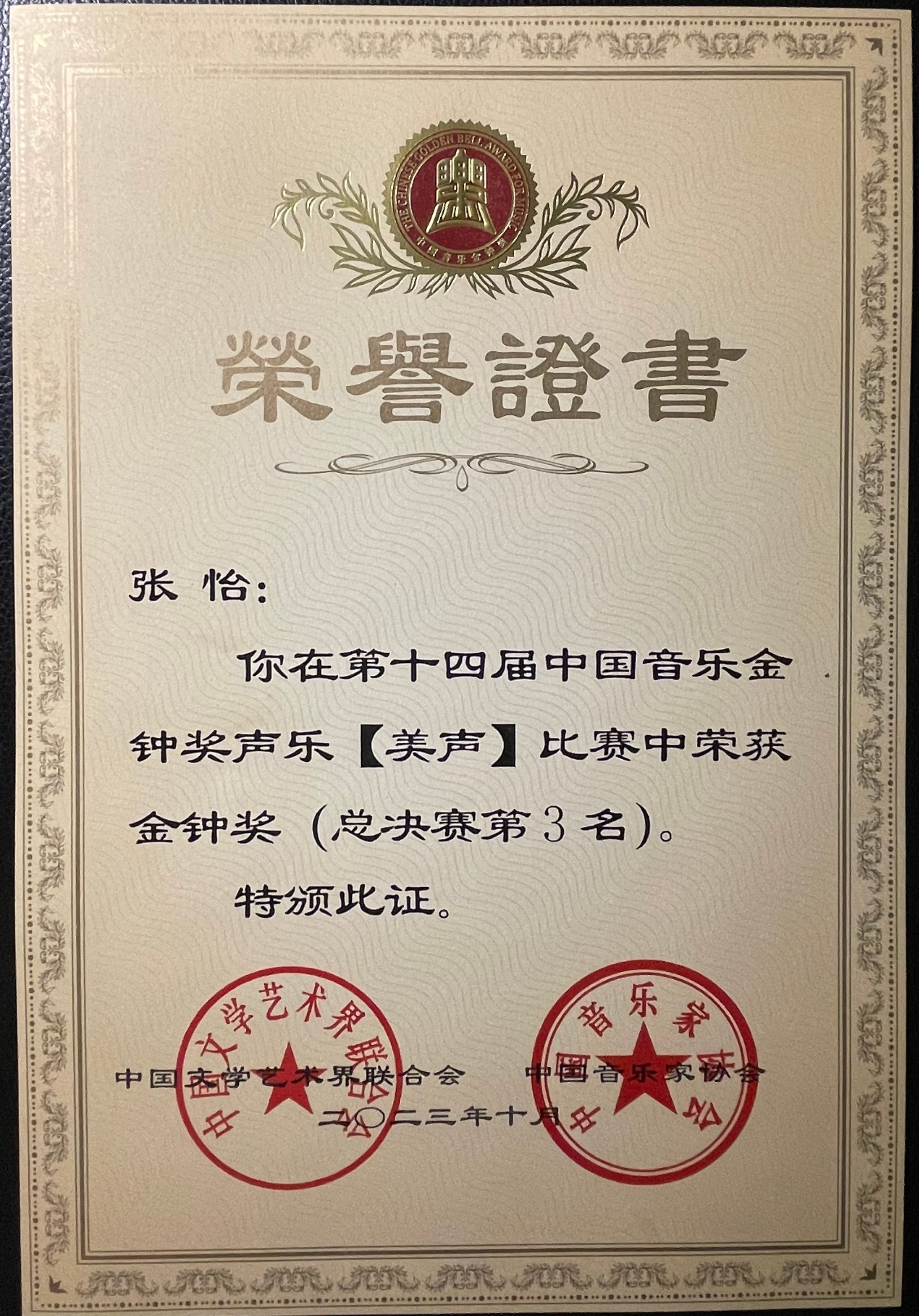 2018年入选77779193永利集团“BOB”拔尖创新人才培养计划并于广州北京成功举办“张怡个人独唱音乐会”. 同年入选成为国家艺术基金歌剧演唱人才培养项目成员.2020年入选成为“深圳声乐季·中国声乐人才培养计划”成员。